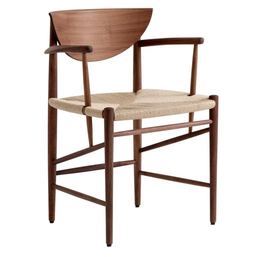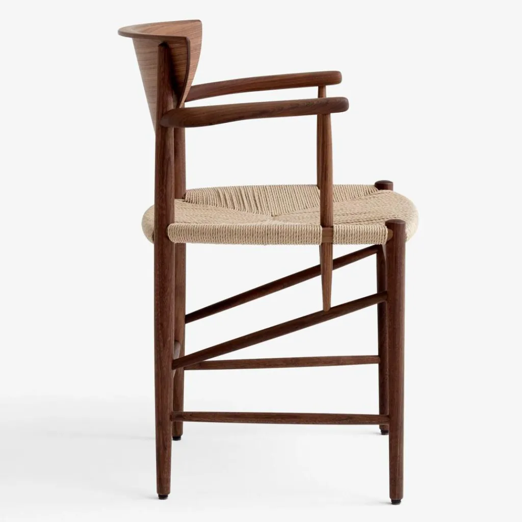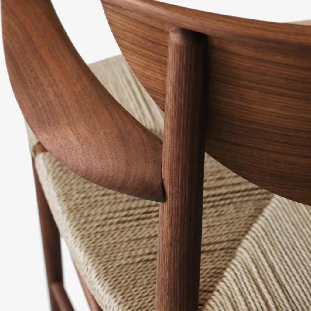 Die seitlich schräg verlaufenden Streben zwischen den Stuhlbeinen und die halbrunde Rückenlehne stellen ein außergewöhnliches Design dar. Eine entspannte Haltung, beispielsweise bei den Mahlzeiten, ermöglichen Ihnen die hohen, breiten Armlehnen. Für ein angenehmes Sitzgefühl sorgt außerdem die Sitzfläche aus natürlicher Papierkordel. Der Drawn HM4 Armlehnstuhl ist vor allem für eine gemütliche Essecke mit rustikaler Ausstrahlung prädestiniert. Er harmoniert perfekt mit dem Landhausstil, passt aber auch zu einer minimalistischen Einrichtung.