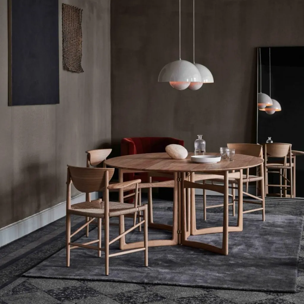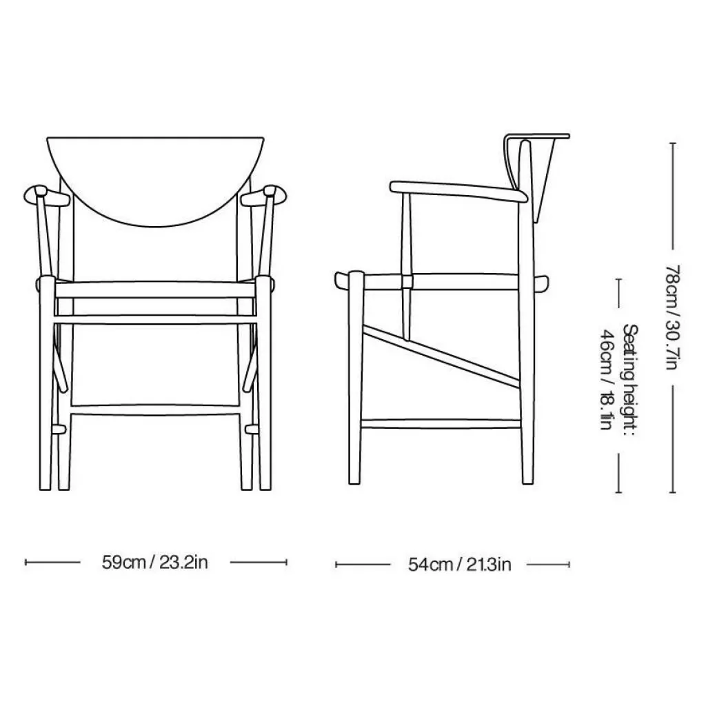 Sie haben die Wahl zwischen einem Drawn HM4 Armlehnstuhl in hellem oder dunklem geölten Massivholz, wodurch die Maserung deutlich hervorgehoben wird. Das Naturmaterial ist dadurch feuchtigkeitsabweisend, bleibt jedoch weiterhin atmungsaktiv. Die Sitzhöhe von 46 cm gilt als optimal für die Bequemlichkeit am Tisch. Mit einer Breite von 59 cm, Rückenlehnenhöhe von 78 cm und Tiefe von 54 cm ist er auch für größere Menschen bestens geeignet. Je nach Holzart verfügt der Stuhl über ein Gewicht von 5,5 bzw. 6 Kilogramm, das ihm eine gute Standfestigkeit verleiht.