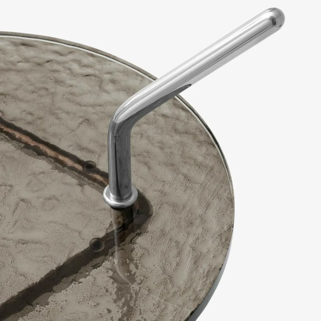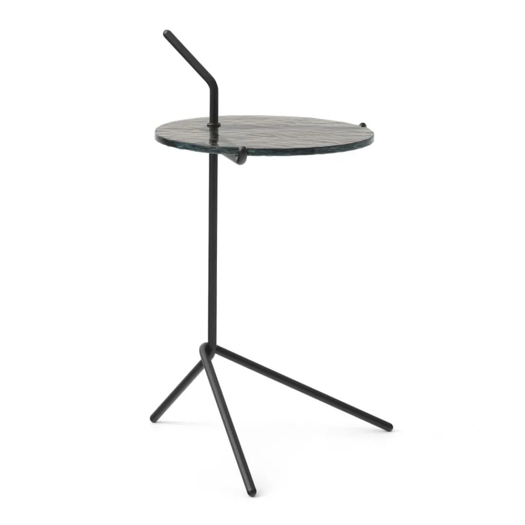 Eine runde Tischplatte auf einem dreibeinigen Gestell: Mit diesen einfachen Elementen wirkt der Halten SH9 Beistelltisch minimalistisch. Doch näher betrachtet, fallen viele unterschiedliche Details auf, die das Tischchen zum extravaganten Blickfang machen. Es beeindruckt die Befestigung der Platte, deren drei Ankerpunkte verschiedenartig ausgeführt sind. Daneben regt das Tischgestell zum Nachdenken an, denn die aus geraden Stäben gebogene Konstruktion erscheint aus statischen Überlegungen unmöglich. Mit dem oben aus der Platte ragenden Tischbein weist der Halten SH9 Beistelltisch ein funktionales Detail auf, das als Griff zum Verstellen des Möbels verwendet werden kann. Zudem begeistern die attraktiven Materialien: Die Platte ist wahlweise aus Marmor oder aus strukturiertem Glasguss gefertigt. Sie zeichnet sich als Unikat aus; das Gestell besteht aus poliertem oder lackiertem Edelstahl – ein zierlicher Blickfang fürs Wohnzimmer oder eine Praxis.