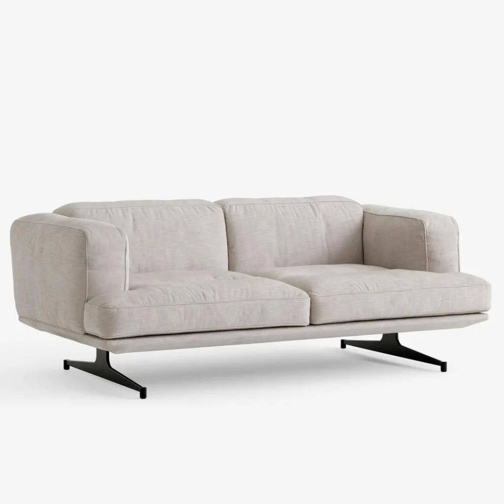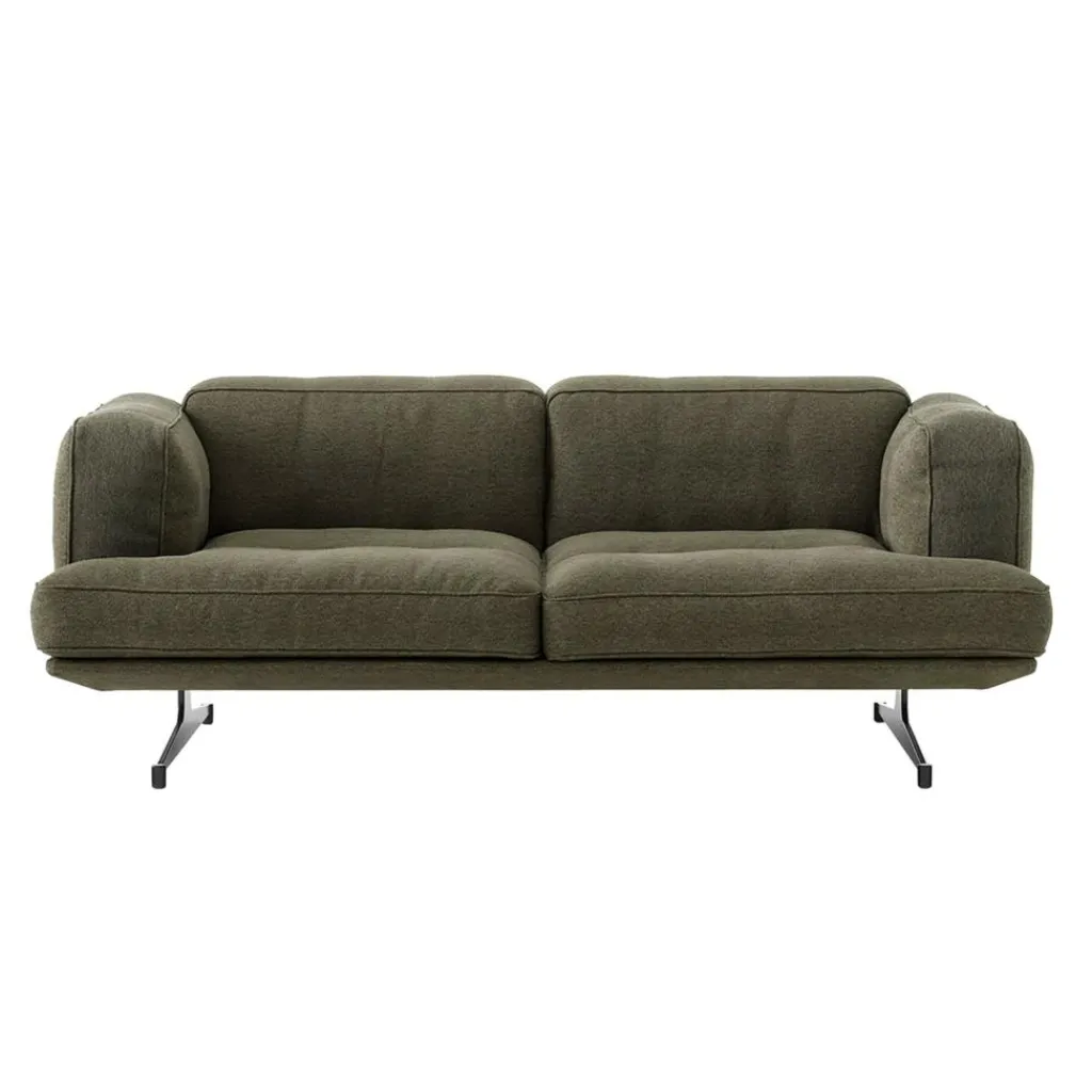 Eine großzügige Sitzfläche, hohe Armstützen und eine bequeme Rückenlehne, allesamt dick gepolstert – schon der Anblick des Inland AV22 2-Sitzer Sofas lässt seine Funktion erkennen. Es ist ein kuschelig weicher Rückzugsort zum Relaxen. Die prallen Polster, die mit einem strapazierfähigen Stoff bezogen und mit hochwertiger Polyesterwatte gefüllt sind, versprechen ebenso Gemütlichkeit wie die weichen Schaumstoffmatten darunter. Die Konstruktion mit ihren schlanken, kurzen Beinen aus pulverbeschichtetem Stahl rückt in den Hintergrund, sodass die niedere Sitzfläche zu schweben scheint. Hinter der kuscheligen Polsterung verbirgt sich ein robuster Kern aus massivem Buchen- und Sperrholz, das dem Inland AV22 2-Sitzer Sofa seine Stabilität verleiht. Das bequeme Sitzmöbel ist perfekt für ein ausgedehntes Mittagsschläfchen oder einen gemütlichen Fernsehabend und lädt auch in einer Lounge oder der Lobby eines Hotels zum Entspannen ein.