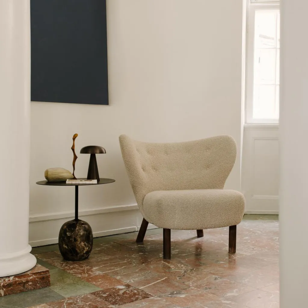 Der Lato LN9 Beistelltisch Platte Holz oval wurde von Luca Nichetto für die Marke &Tradition entworfen. Der Tisch ist eine Hommage an die Kindheit des italienischen Designers: Bei dem verspielten Modell erinnerte er sich an Lollipops, die heute noch beliebte Süßigkeit. Und tatsächlich sieht das Tischgestell aus wie ein auf den Kopf gestellter runder Lolli.