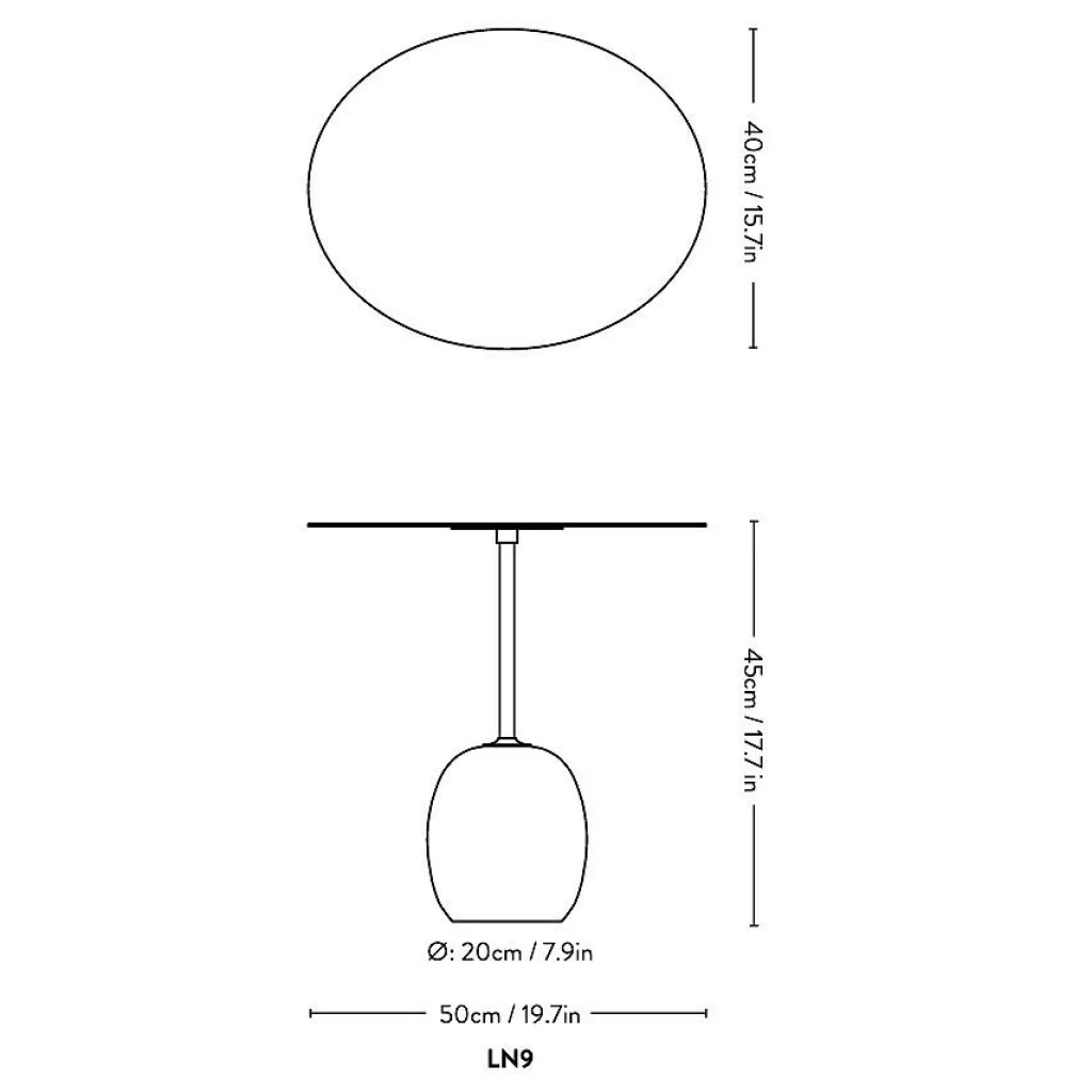 Der Lato LN9 Beistelltisch Platte Holz oval ist 50 cm breit. Die Höhe beträgt 45 cm und die Tiefe 40 cm. Der zeitlos elegante Tisch ist 19,5 kg schwer.