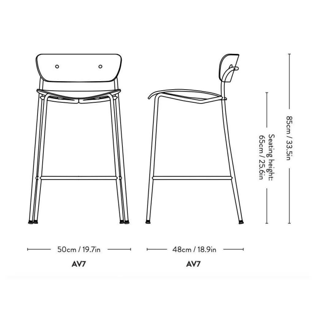Mit seinen Maßen von 50 x 85 x 48 cm und einer Sitzhöhe von angenehmen 65 cm erfüllt der Pavilion AV7 Barhocker perfekt seine Rolle als einladende Sitzgelegenheit im Wohn- oder Essbereich. Sein Eigengewicht von nur fünf Kilogramm ermöglicht ein problemloses Umstellen und garantiert dabei dennoch Stabilität und Standhaftigkeit. Hochwertiges Holz sorgt für ein bequemes Sitzen, und die Füße aus robustem Stahl verleihen dem Stuhl seinen Halt.