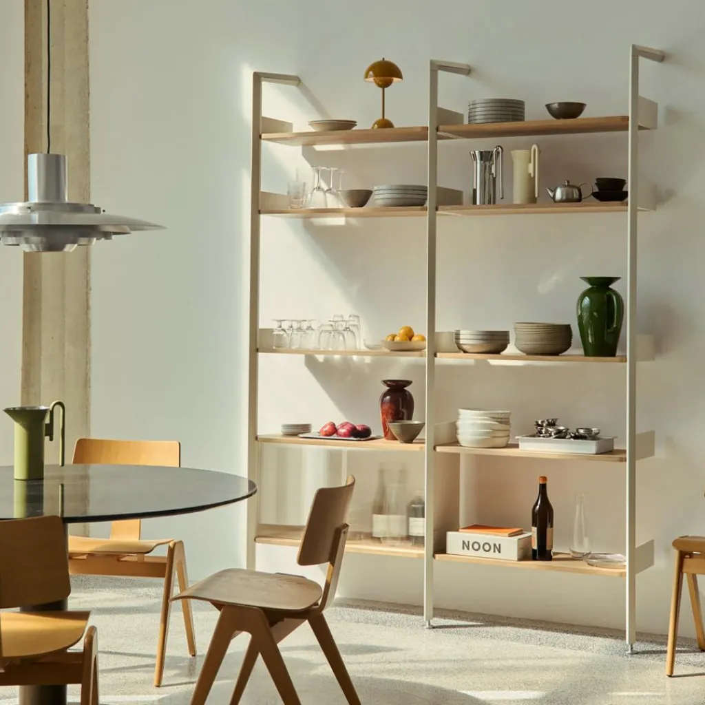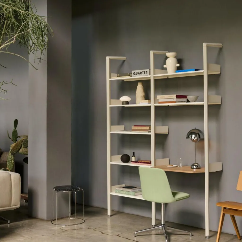 Rombe Konfiguration B IF1 & IF5 Regal mit Schreibtischplatte. Dieses Produkt ist von Industrial Facility Limited für die Marke &Tradition entworfen worden.
