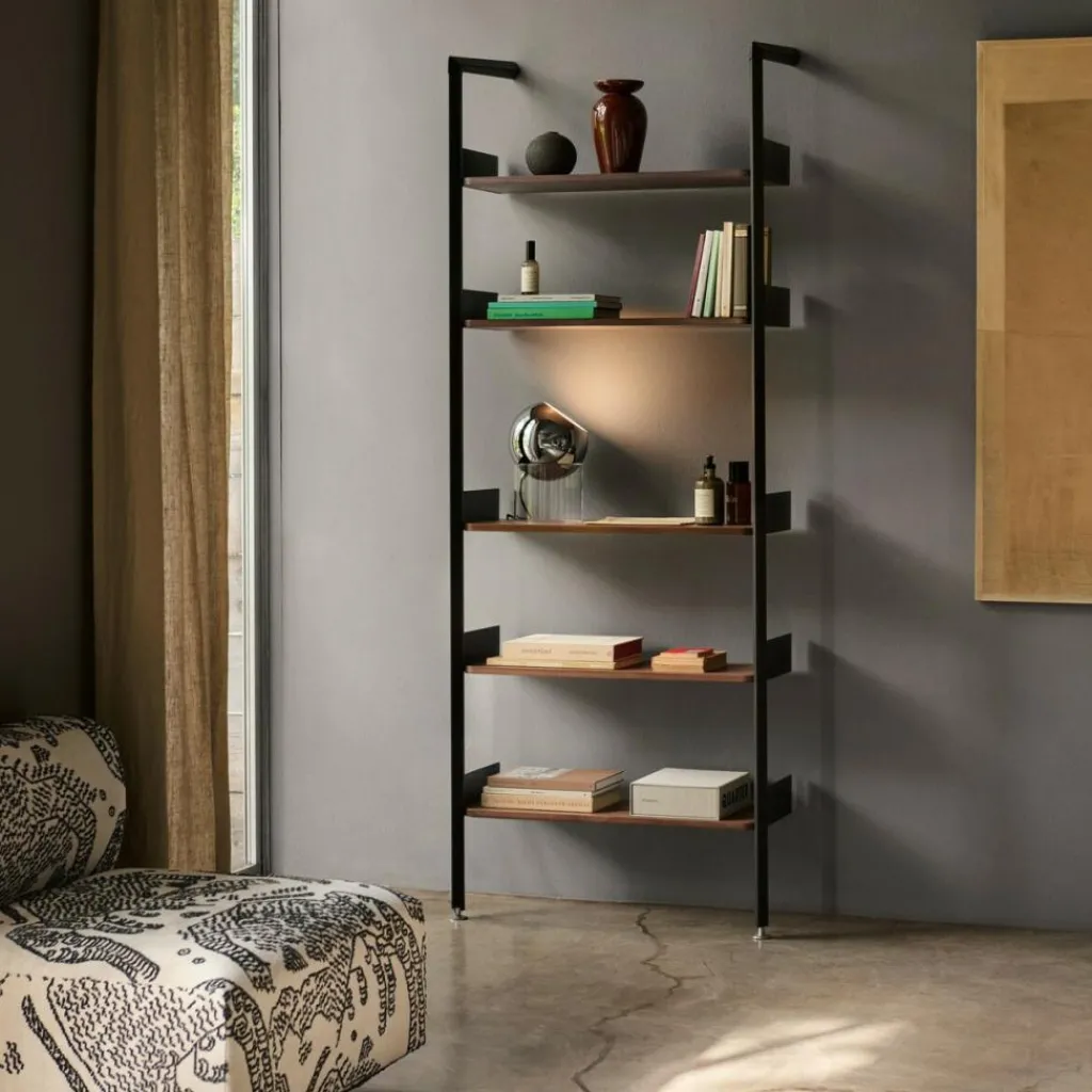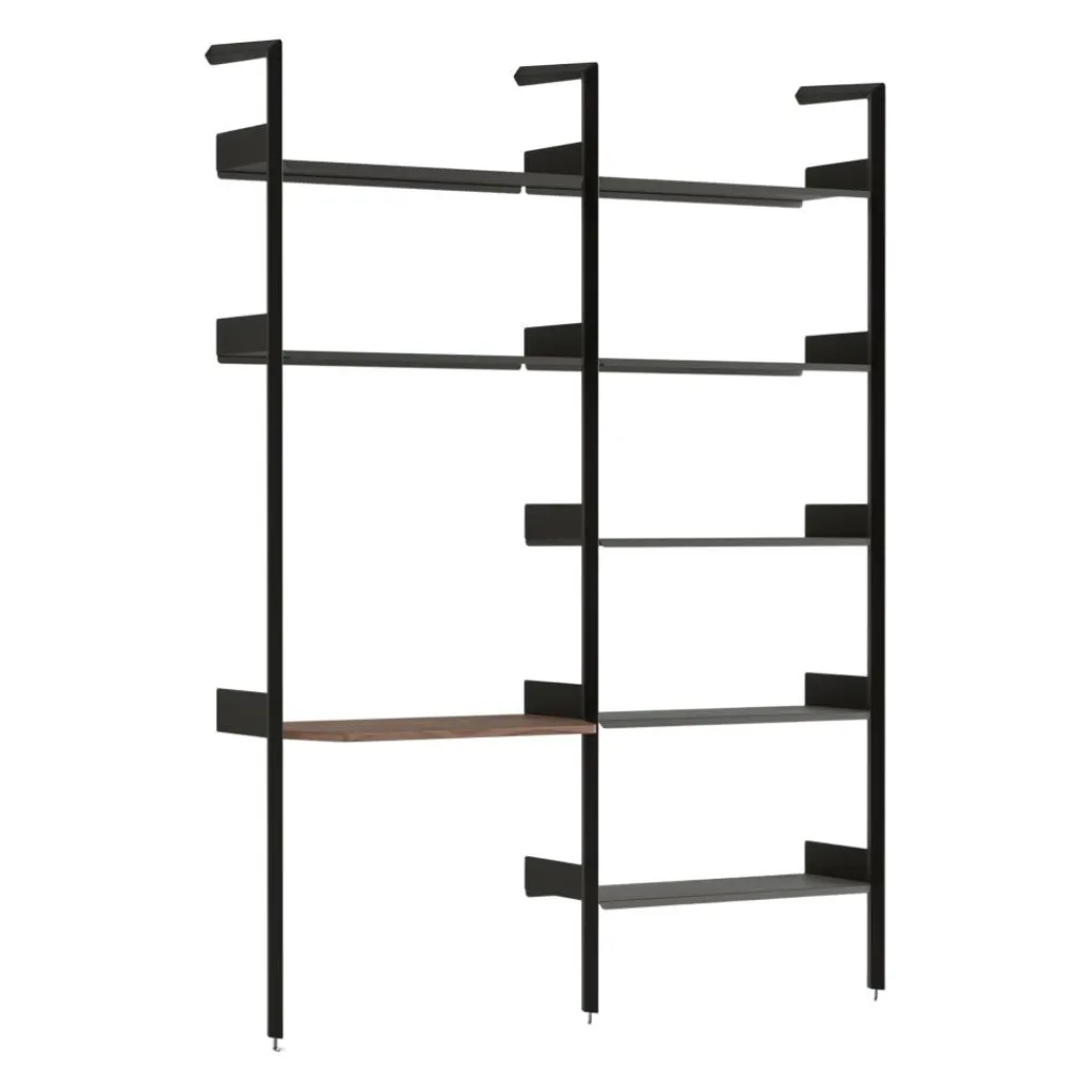 | Material | Gestell: Aluminium, Regalböden: Walnussfurnier, Schreibtischplatte: Walnussfurnier Gestell: Aluminium, Regalböden: Eichenfurnier, Schreibtischplatte: Eichenfurnier Gestell: Aluminium, Regalböden: Stahl, Schreibtischplatte: Eichenfurnier Gestell: Aluminium, Regalböden: Stahl, Schreibtischplatte: Walnussfurnier |