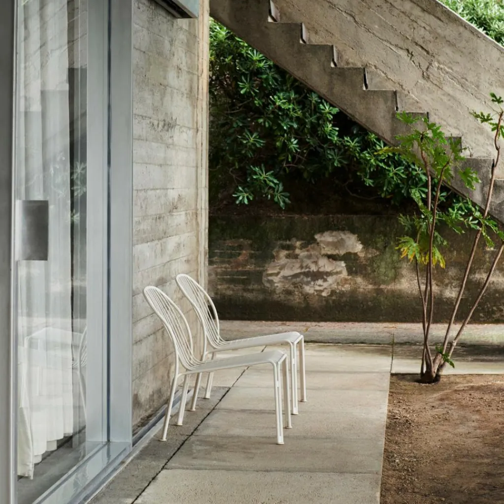 Mit seinen filigranen Gitterelementen bildet der Thorvald SC100 Garten Loungestuhl einen attraktiven Blickfang, der im Sonnenlicht einen reizvollen Schattenwurf erzeugt. Die Sitzfläche besteht aus einem zarten Gitter, dessen Längsstäbe zu einer rückwärts geneigten Rückenlehne aufgebogen sind. Der Stuhlrahmen setzt sich aus vier gebogenen Stangen zusammen, die raffiniert zu einer stabilen und belastbaren Konstruktion kombiniert werden. Daneben verspricht der ergonomische Schwung der Flächenelemente einen bequemen Sitzkomfort. Der Thorvald SC100 Garten Loungestuhl ist aus hochwertigem Stahl gefertigt. Dank der matten Pulverbeschichtung zeichnet sich das strapazierfähige Designstück durch eine langlebige Witterungsbeständigkeit aus. So passt es auf einen Balkon, eine Terrasse, in ein Atrium oder mitten in die Wiese einer Outdoorbar, eines Hotels oder eines Gartens.