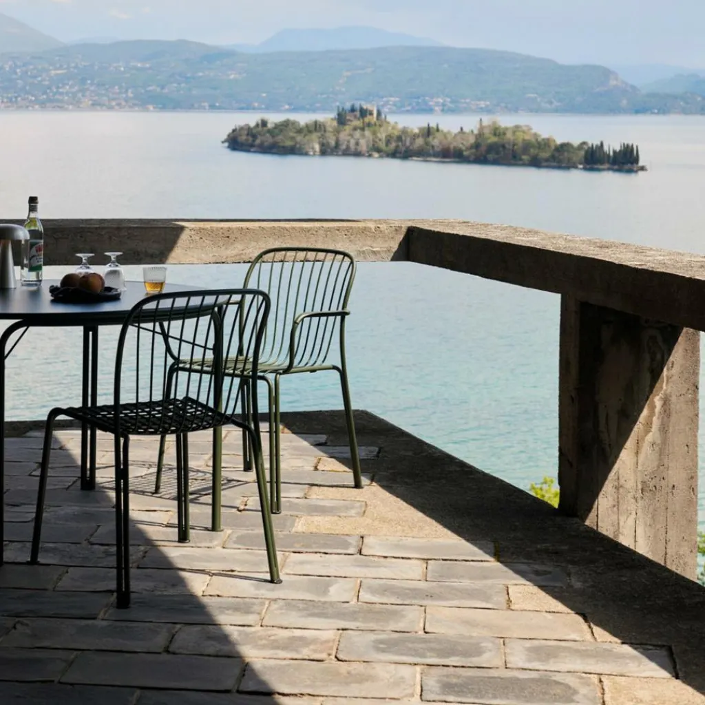 Mit seinem Sitz aus einem ergonomisch geschwungenen Gitternetz und den nach außen gebogenen Armlehnen verspricht der Thorvald SC95 Gartenarmlehnstuhl einen angenehmen Sitzkomfort. Das Stuhlgestell mit Kunststoffgleitern, das sich aus vier gebogenen Rundstangen zusammensetzt, garantiert einen stabilen und belastbaren Stand. Dabei bilden die Enden der schlanken Stäbe je zwei Beine, die mit den anderen Elementen jeweils zu Doppelstützen verbunden sind. Zusammen mit den luftigen Flächen von Sitz und Lehne macht diese raffinierte Konstruktion den Thorvald SC95 Gartenarmlehnstuhl zum reizvollen Blickfang, der im Sonnenlicht attraktive Schatten wirft. Aus hochwertigem Stahl gefertigt und mit einer Pulverbeschichtung versehen, eignet sich der robuste und witterungsbeständige Stuhl für den Einsatz im Freien. Er passt in ein Atrium-Restaurant, auf die Terrasse eines Designhotels oder in den Garten daheim.