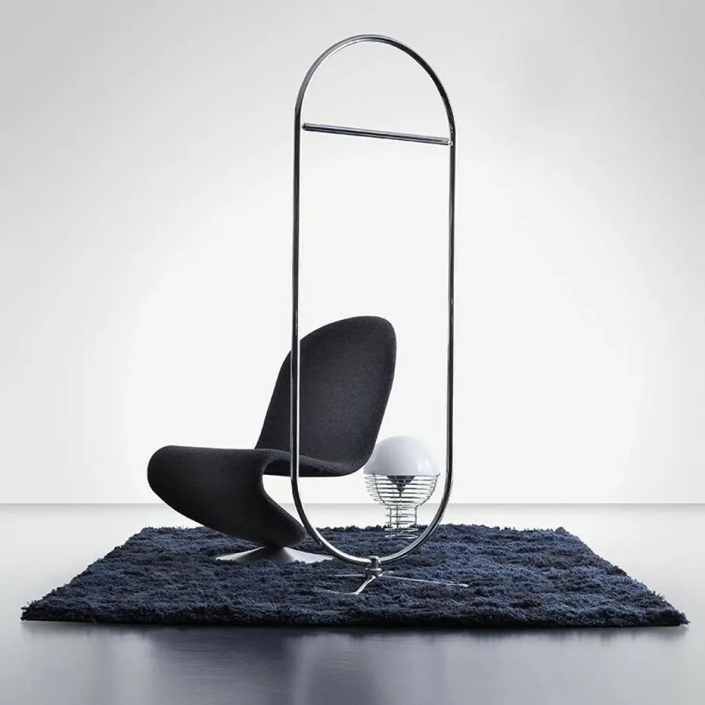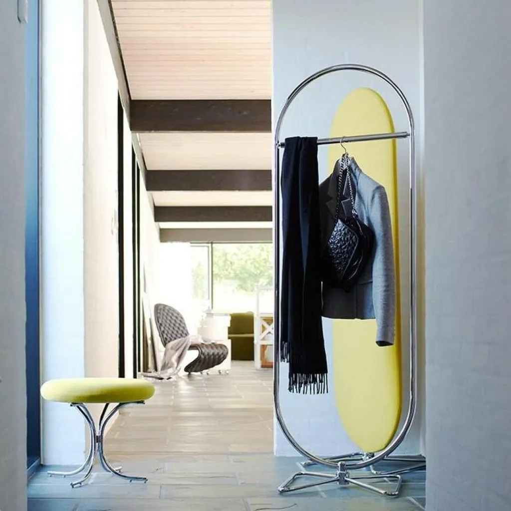 Mit dem eleganten System 1-2-3 Garderobenständer richten Sie sich flexibel und mit erlesenem Geschmack ein. Der Garderobenständer kann ohne weitere Montagearbeiten an einem beliebigen Ort aufgestellt werden. Das gefällige Oval mit dem schleifenförmigen Fuß nimmt die Formensprache Verner Pantons mit Raffinesse auf. Eine Querstange im oberen Bereich dient zum Aufhängen von Kleiderbügeln oder zur Ablage von Jacken, Plaids und Schals.