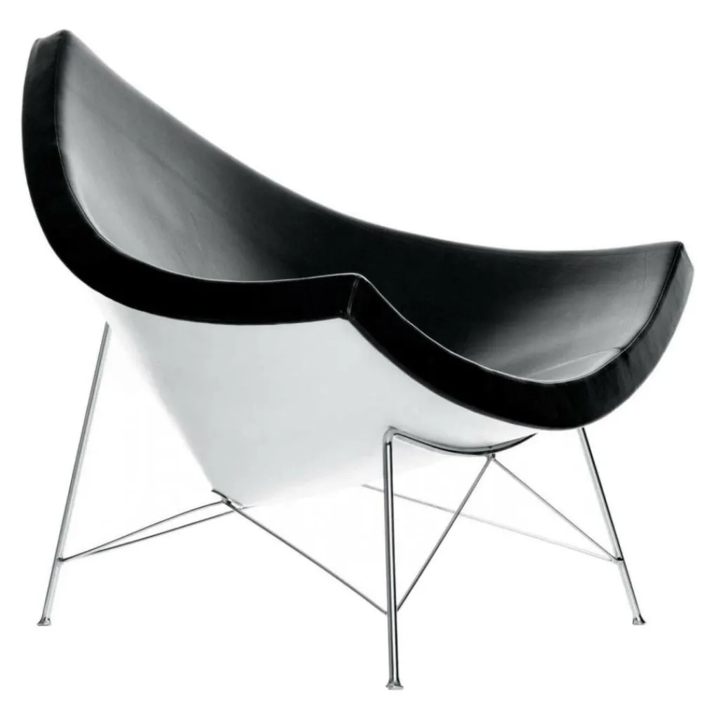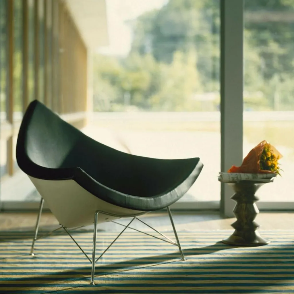 Der Coconut Chair Nelson Sessel wurde von George Nelson für die Marke Vitra entworfen. Sein voluminöses Design ist inspiriert von der Form einer aufgeschnittenen Kokosnuss. Doch erscheint der ikonische Entwurf aus dem amerikanischen Mid-Century auch heute höchst modern.