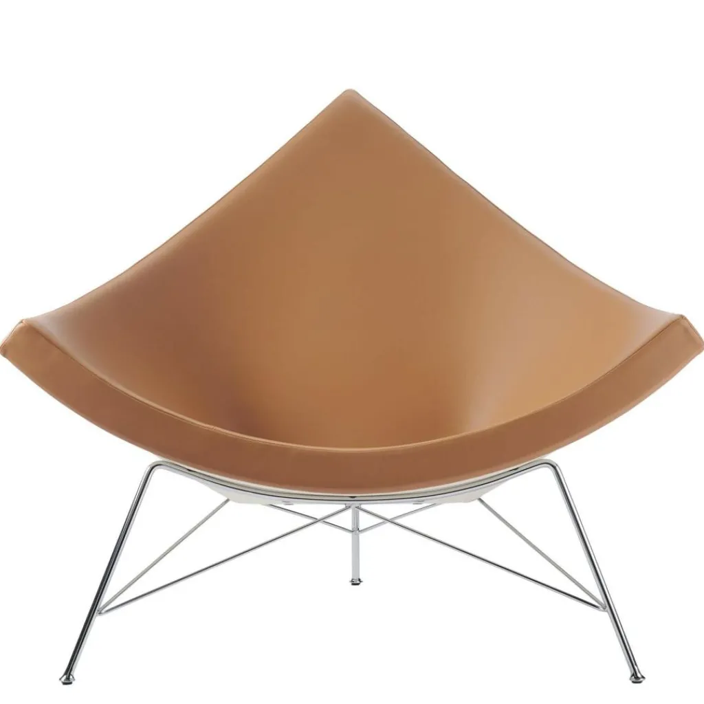 Eine formschöne Schale aus glasfaserverstärktem Kunststoff bildet den Sitz dieses auffälligen Designsessels. Deren Innenseite ist mit einem einteiligen Polster aus hochwertigem Polyurethanschaum ausgelegt und wahlweise mit robustem Stoff oder edlem Leder bezogen. Damit wirkt der Coconut Chair Nelson Sessel wie eine Aufforderung, sich gemütlich hinzusetzen. Ein filigranes Gestänge aus glanzverchromtem Stahlrohr bildet dabei den zurückhaltenden, aber stabilen Unterbau. Die drei ausgestellten Beine garantieren eine hohe Belastbarkeit. Mit Filzgleitern versehen, bieten sie auf harten Böden einen stabilen Halt. So eignet sich der Coconut Chair Nelson Sessel ebenso für öffentliche Gebäude wie für den privaten Wohnraum. Als Einzelstück passt das bequeme Sitzmöbel ins Wohnzimmer oder in eine gemütliche Leseecke. Zusammen mit weiteren Coconut-Chair-Modellen bildet er in einer Lounge, im Vorzimmer einer Agentur oder im Wartebereich einer Praxis ein formschönes Ensemble.