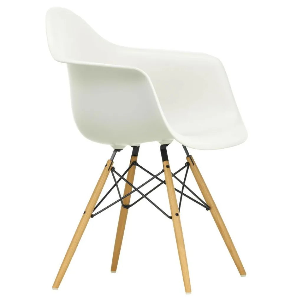 Der Eames Plastic Armchair DAW Gestell Esche wurde von den Designern Ray und Charles Eames für den Hersteller Vitra entworfen. Als Team haben der amerikanische Designer Charles Eames und seine Frau Ray das Wohn- und Möbel-Design der Mitte des 20. Jahrhunderts geprägt. Ihre Entwürfe orientieren sich an ausgeprägter Funktionalität und dem Bemühen, gestalterisch anspruchsvolle Möbel durch Serienfertigung auch für einen breiten Käuferkreis erschwinglich zu machen.