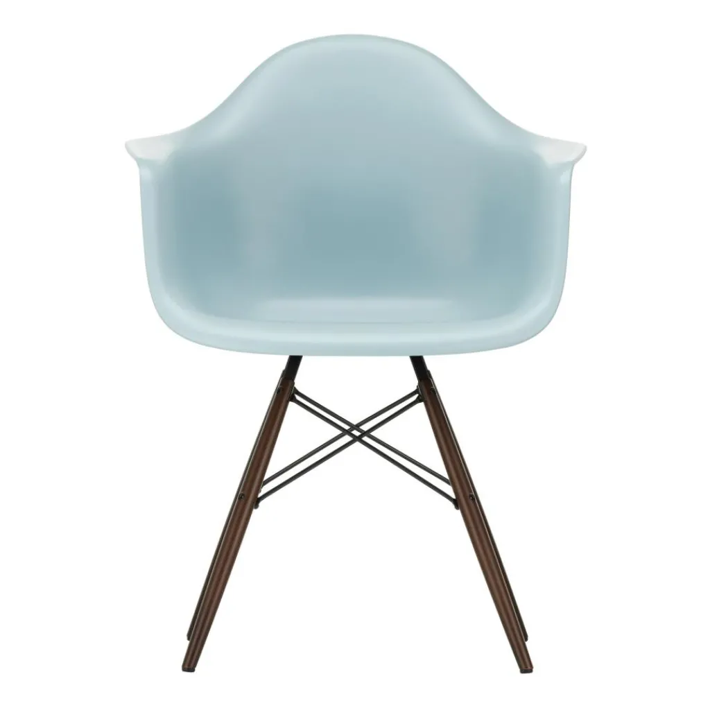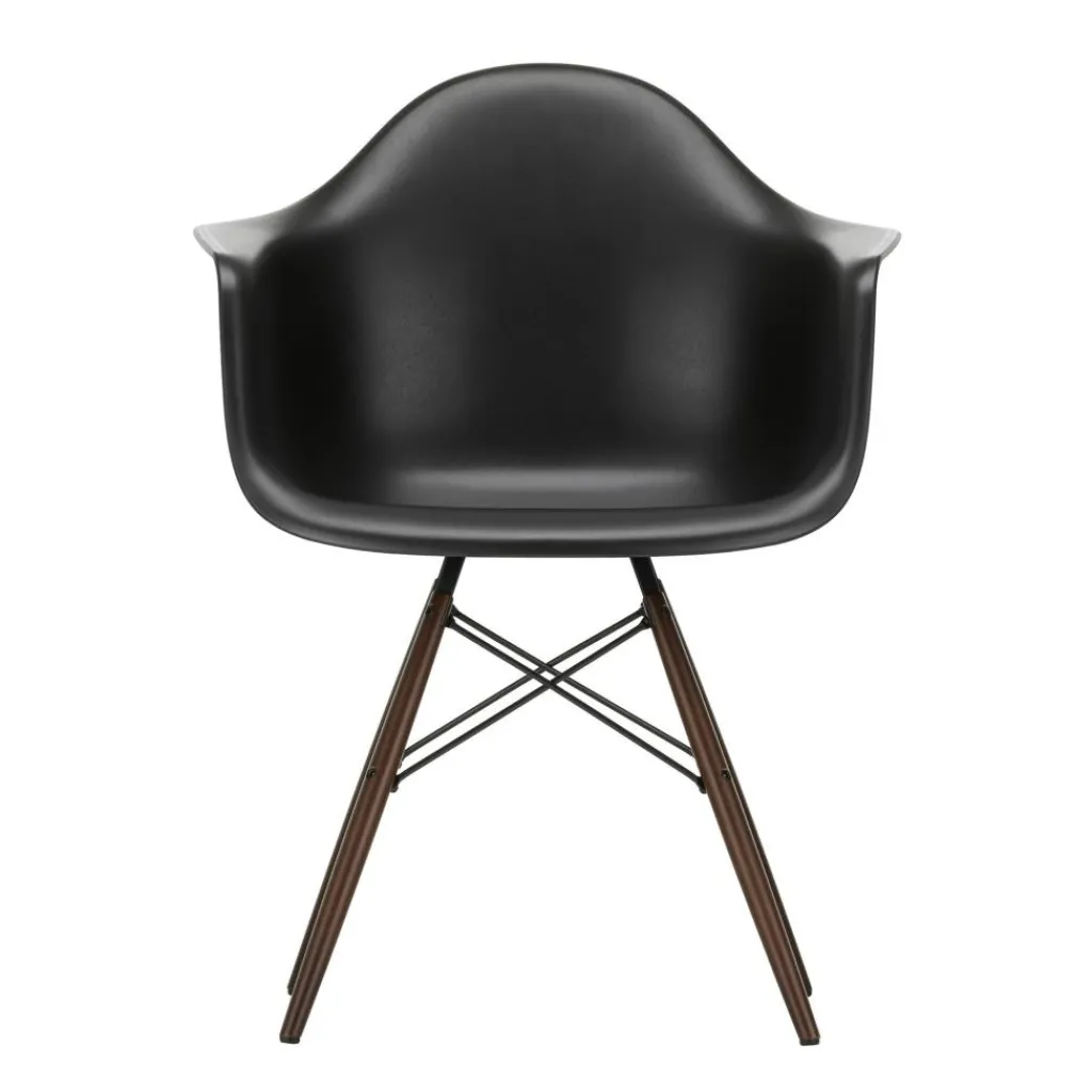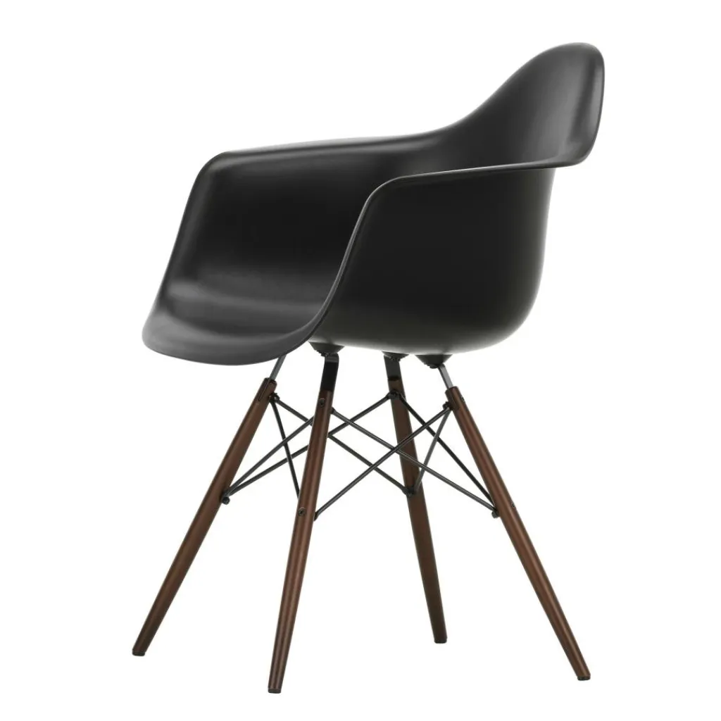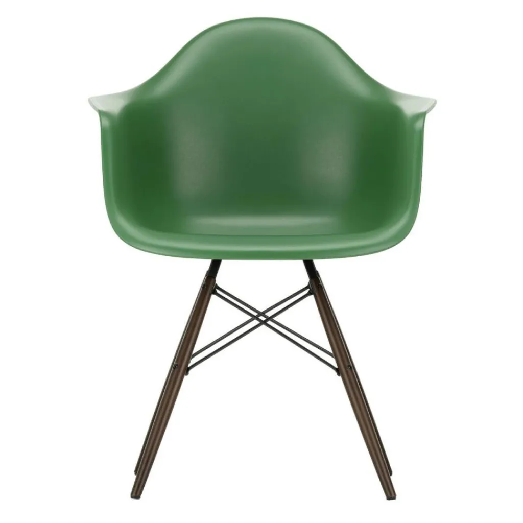 Der Eames Plastic Armchair DAW RE Ahorn dunkel wurde von Ray und Charles Eames für die Marke Vitra entworfen. Er ist Teil einer Serie von Stühlen, die ikonische Designs aus 1950 verwenden und Sitzschalen aus Kunststoff mit verschiedenen Untergestellen kombinieren. Das DAW-Modell beeindruckt mit einer Basis aus Holz. Mit ihrer nachhaltigen Materialwahl präsentieren sich die Eames-Plastic-Armchairs zeitgemäß.