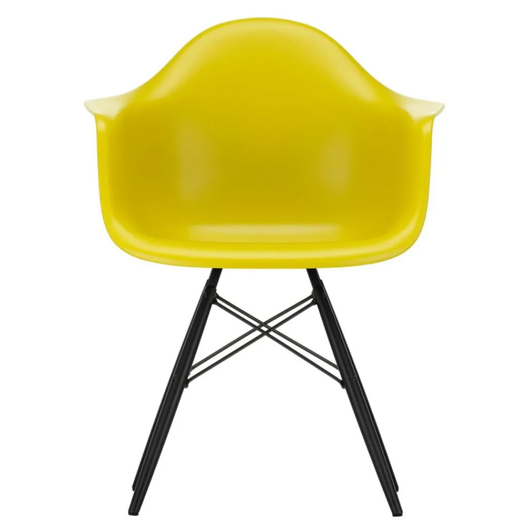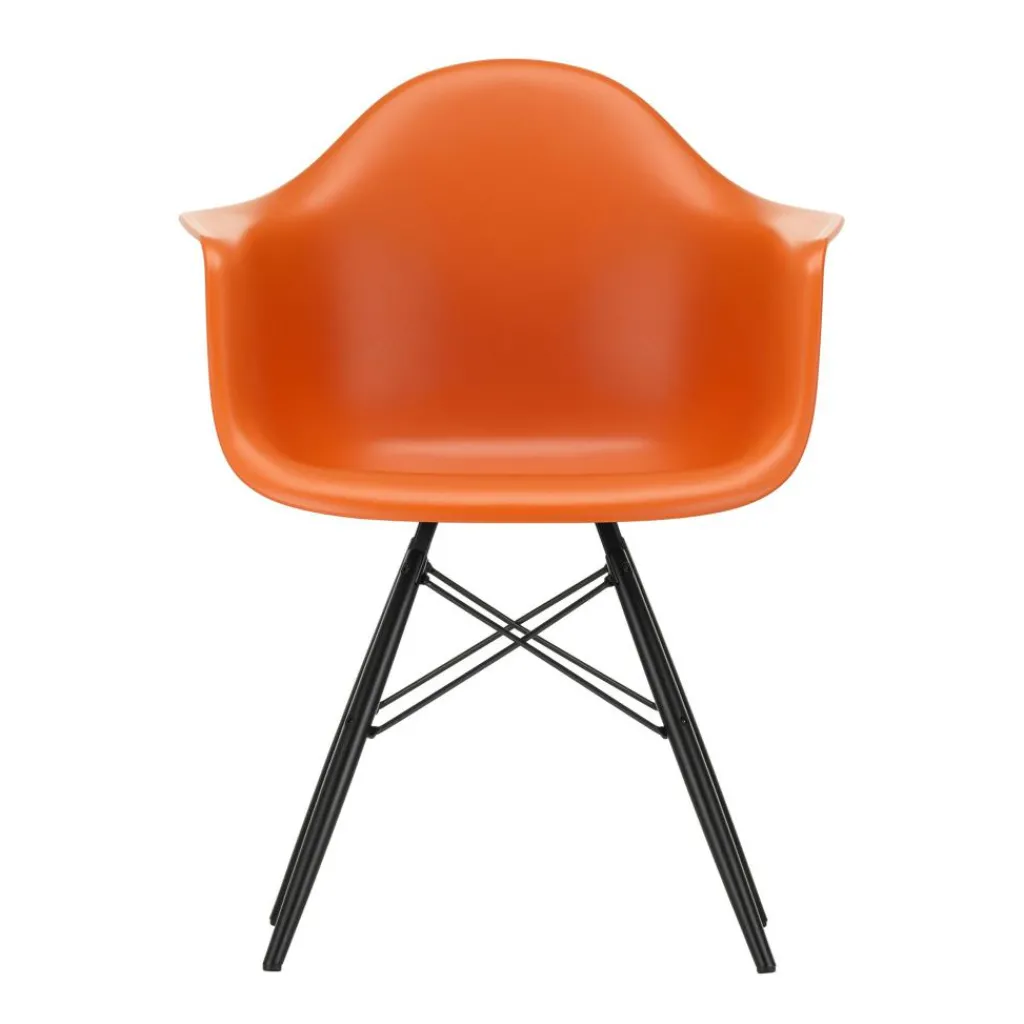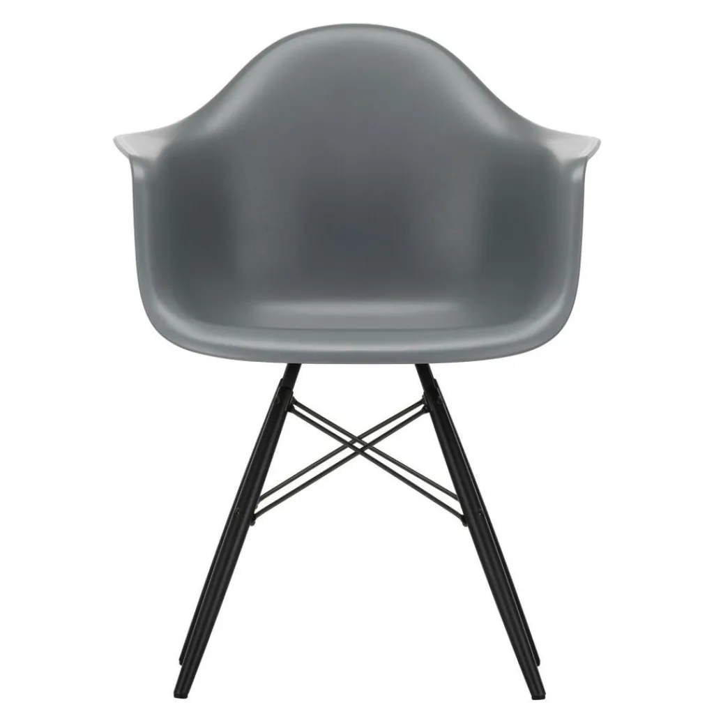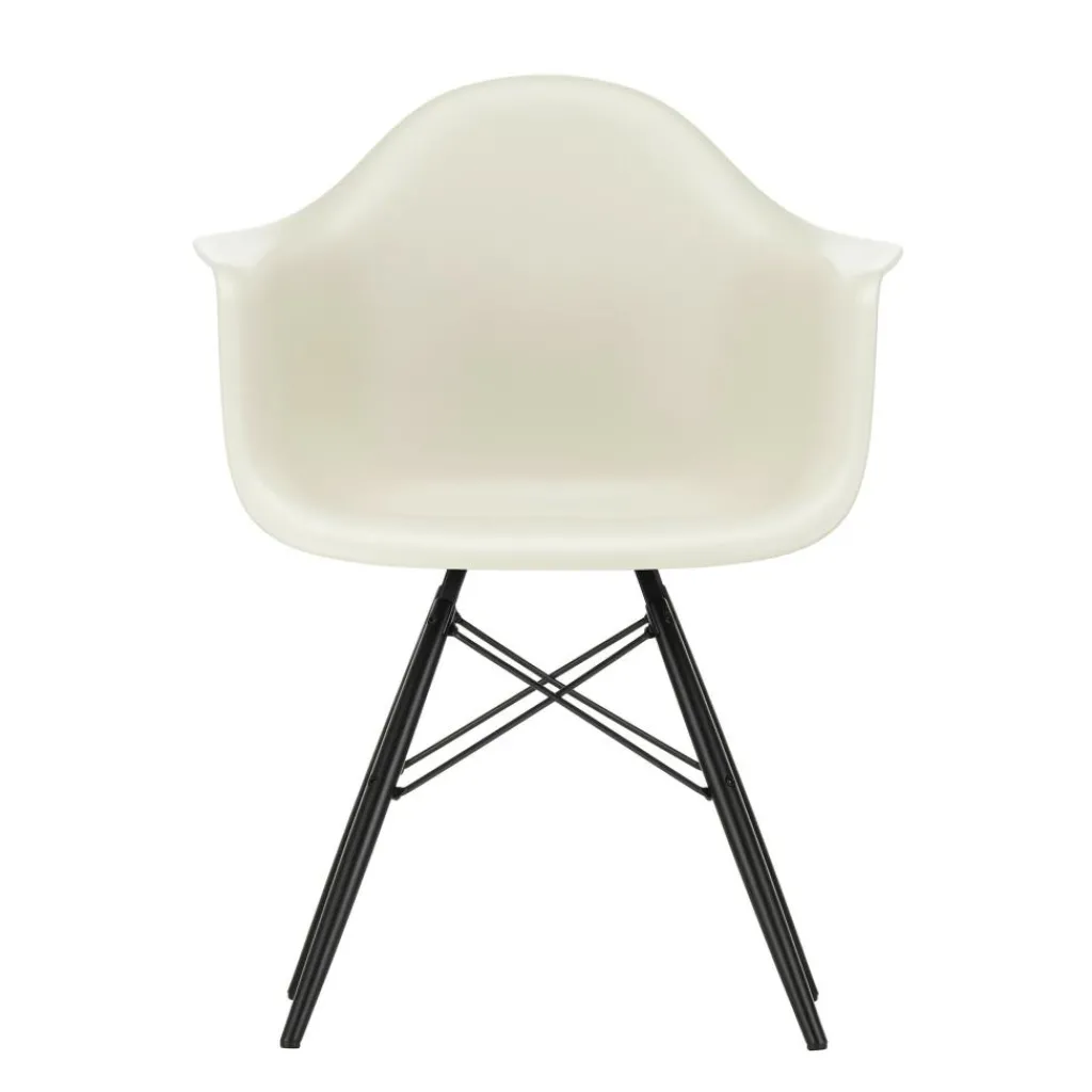 Der Eames Plastic Armchair DAW RE Ahorn schwarz ist 62,5cm breit und 60cm tief. Er hat eine Sitzhöhe von 43cm. Seine Gesamthöhe misst 83cm. Der Stuhl wiegt 6kg. Es stehen Modelle mit verschiedenfarbigen Schalensitzen zur Auswahl. Passende Sitzkissen sind als Zubehör erhältlich.