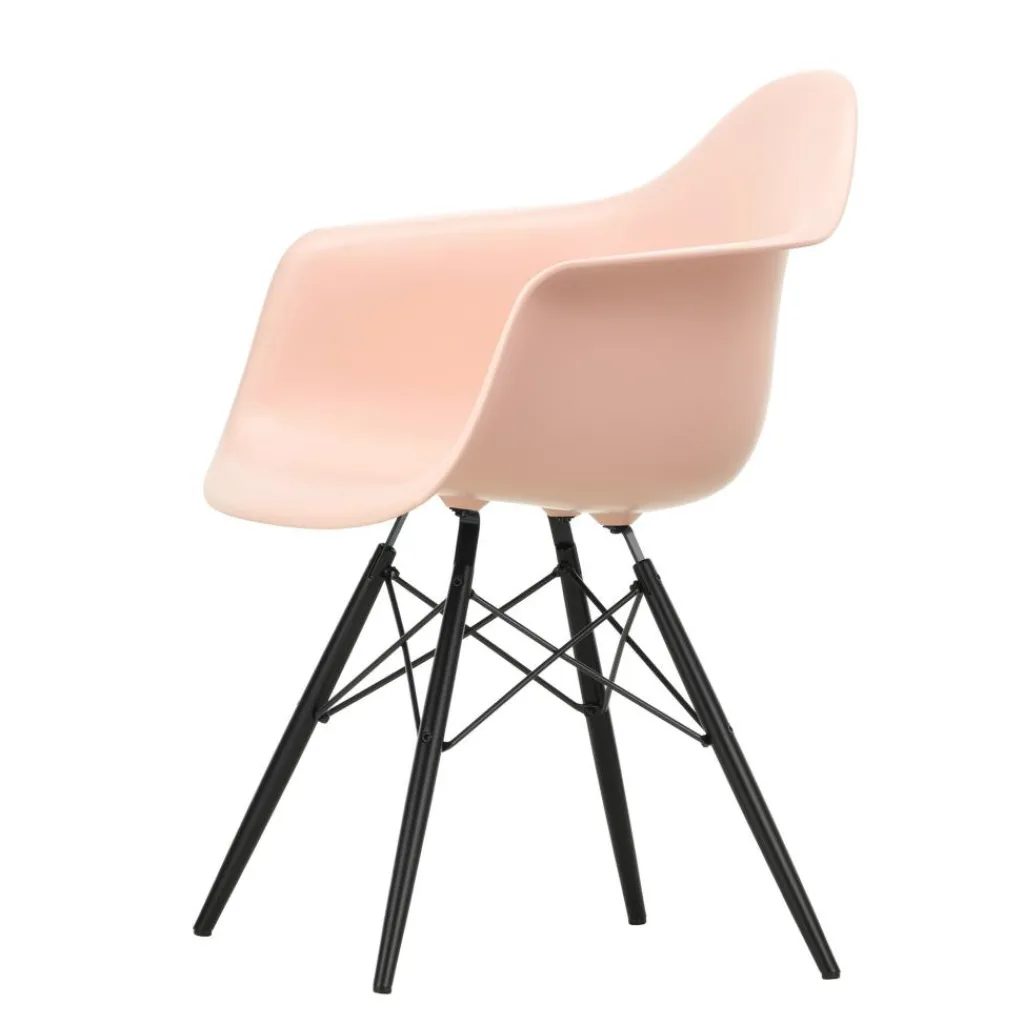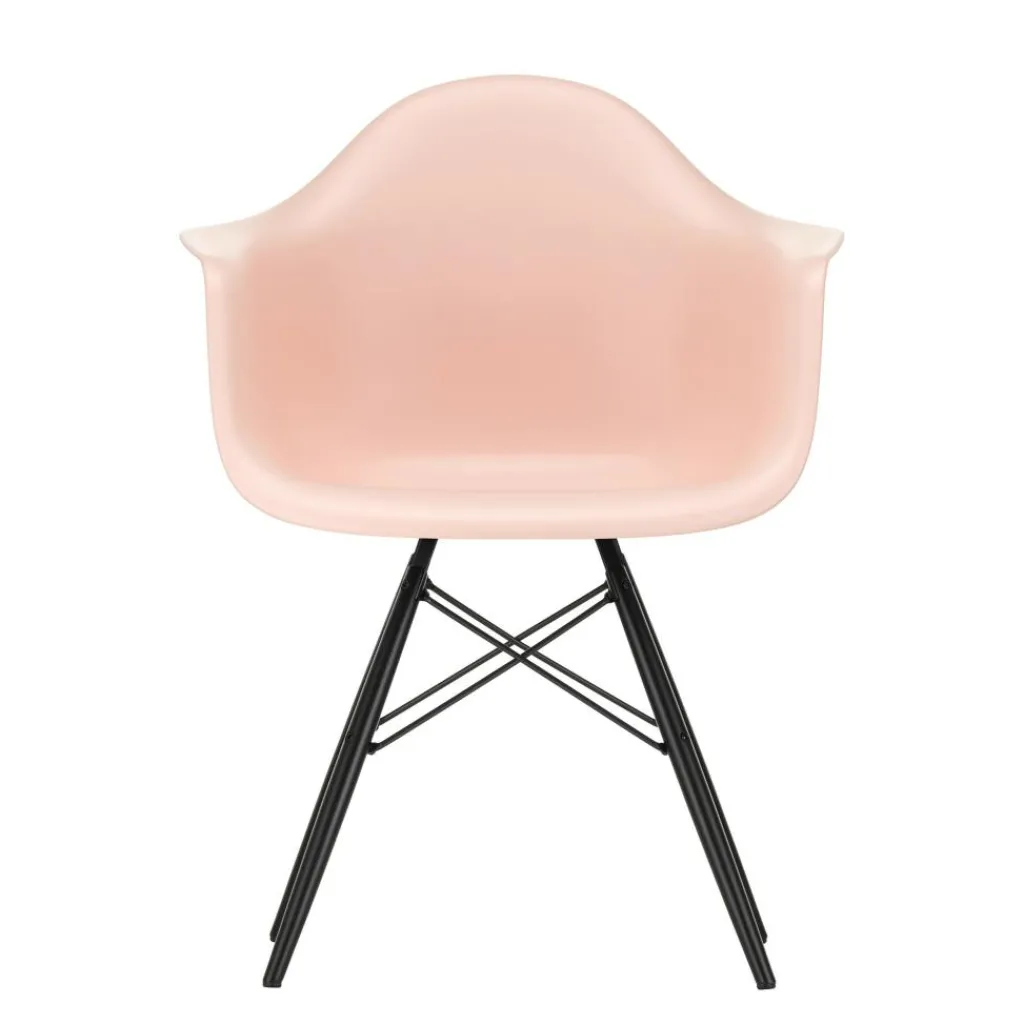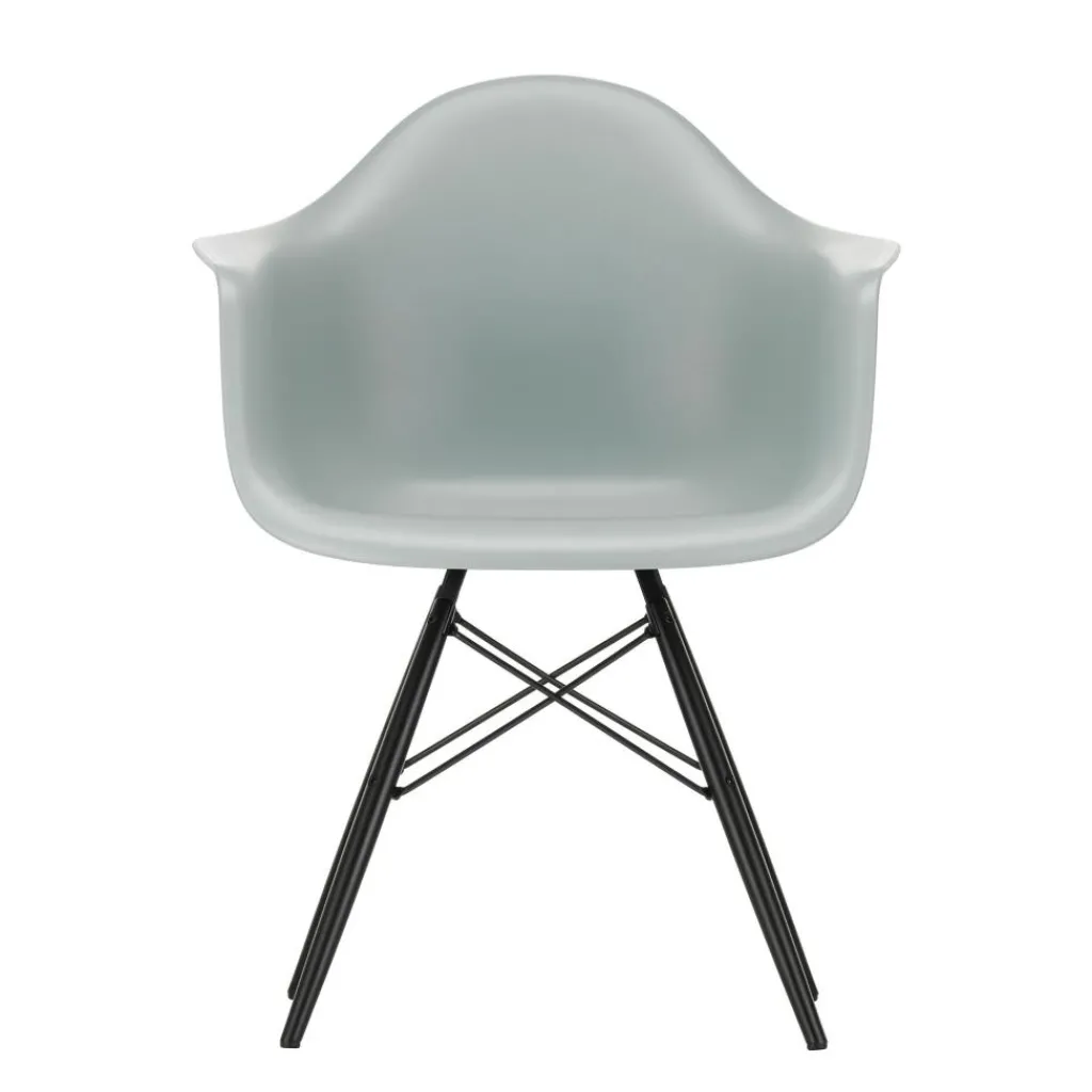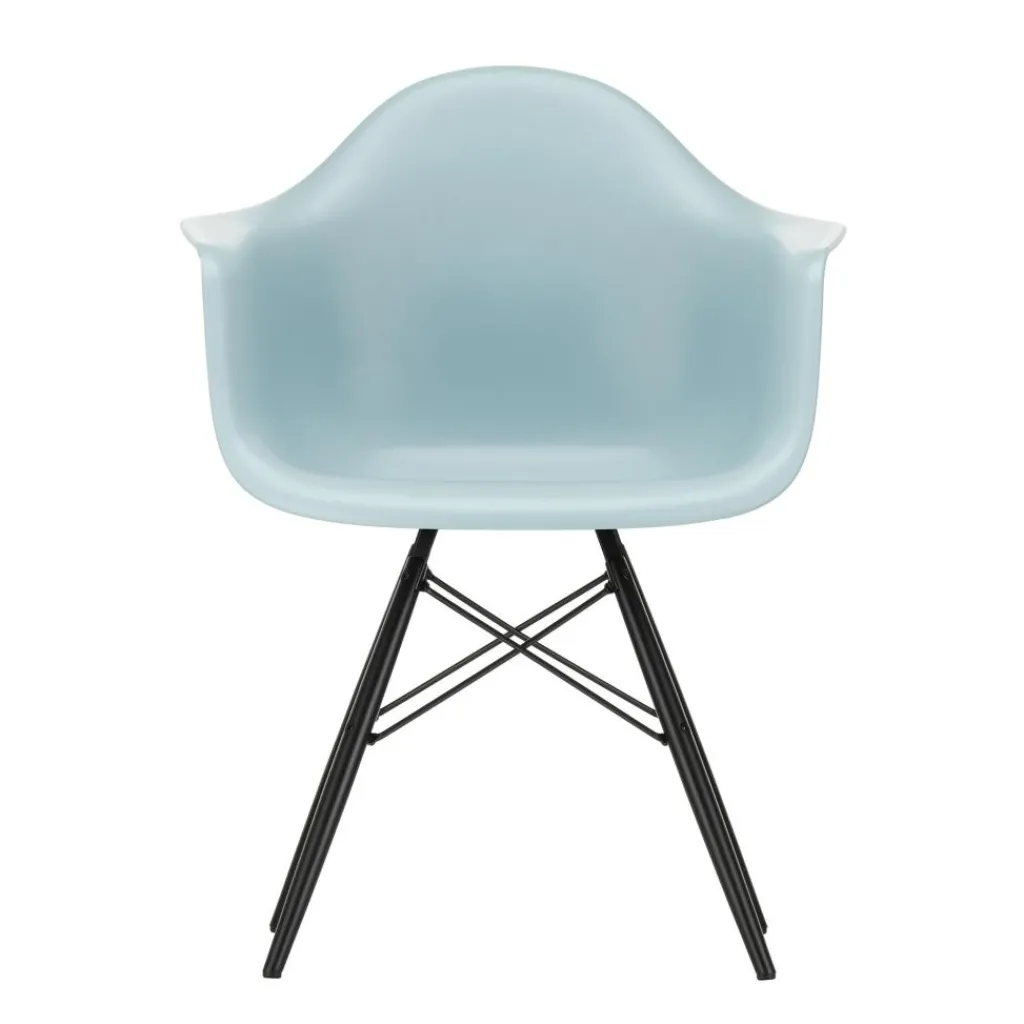 Der Eames Plastic Armchair DAW RE Ahorn schwarz ist 62,5cm breit und 60cm tief. Er hat eine Sitzhöhe von 43cm. Seine Gesamthöhe misst 83cm. Der Stuhl wiegt 6kg. Es stehen Modelle mit verschiedenfarbigen Schalensitzen zur Auswahl. Passende Sitzkissen sind als Zubehör erhältlich.