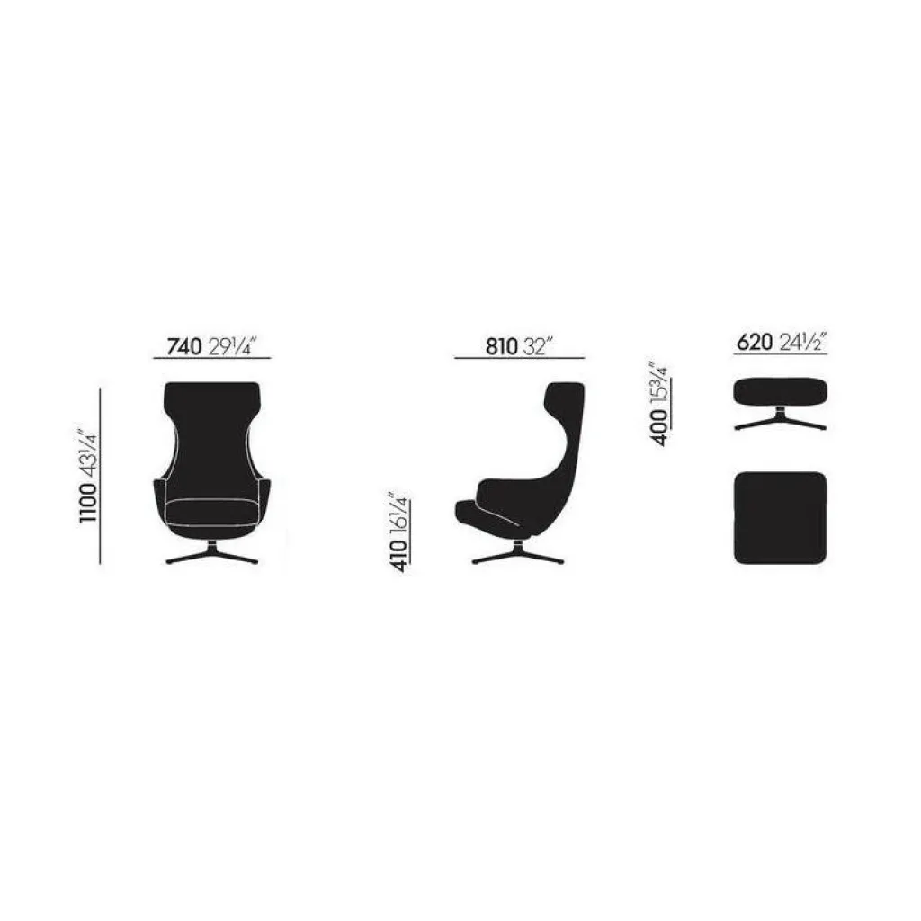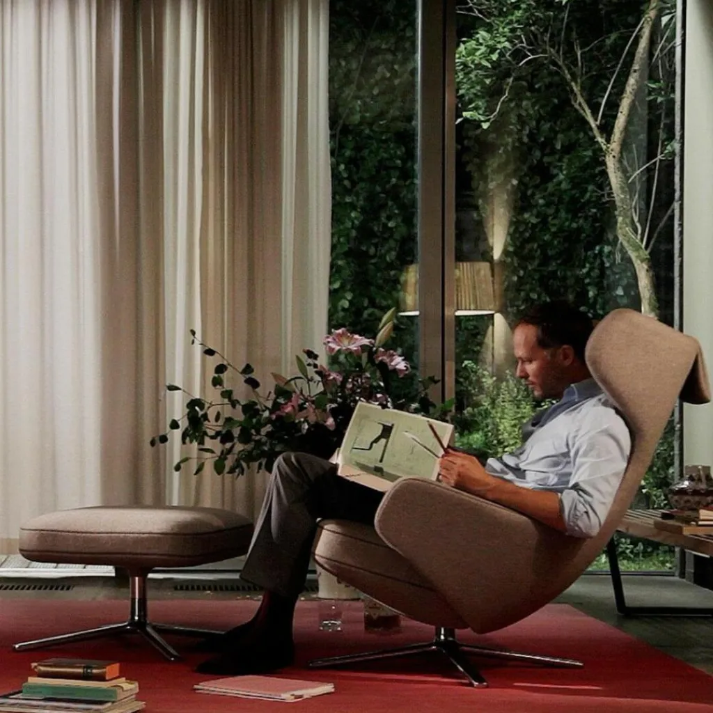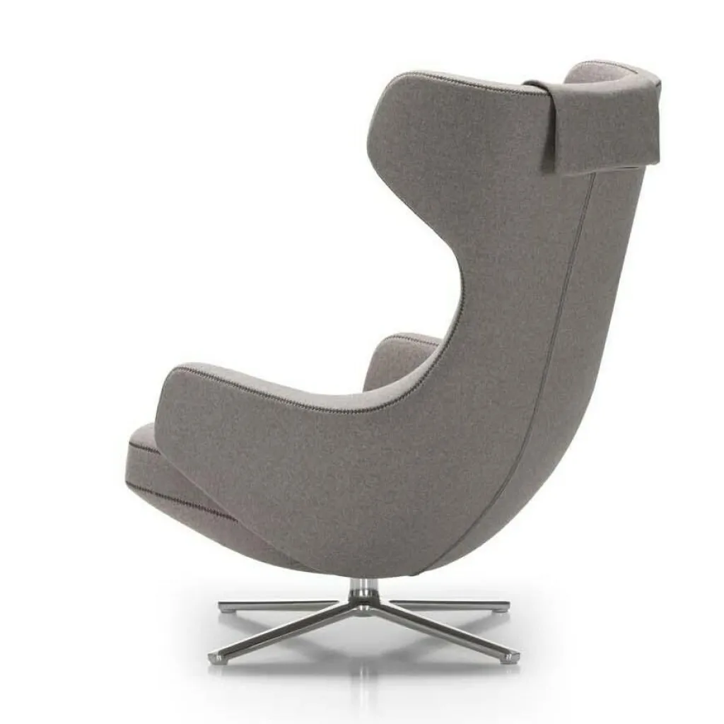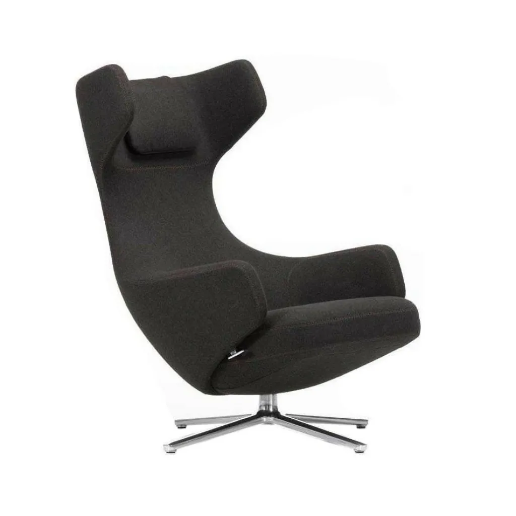 Der Grand Repos Sessel wurde von Antonio Citterio für die Marke Vitra entworfen. Es gibt kaum eine komfortablere Weise, die Freizeit zu genießen als in dem voluminösen Stuhl. Die Sitzschale rahmt den Körper ein.