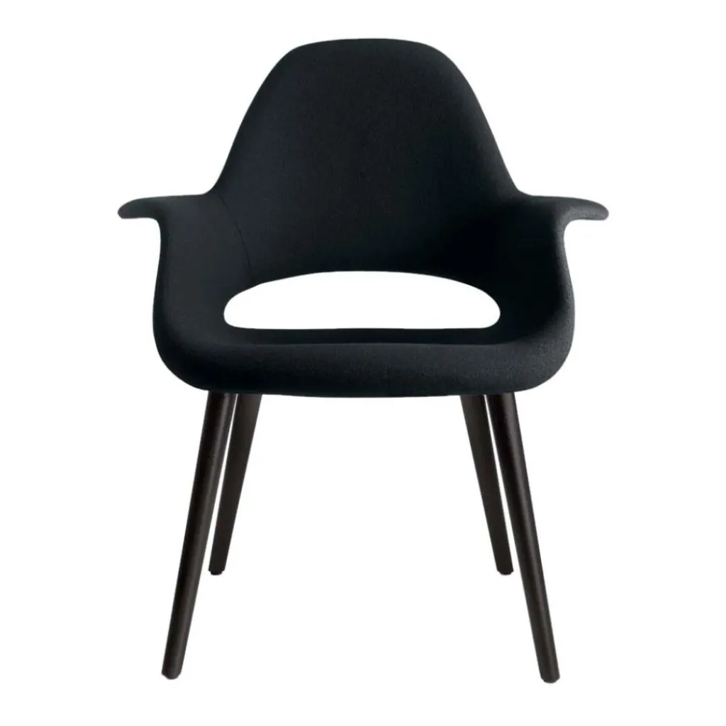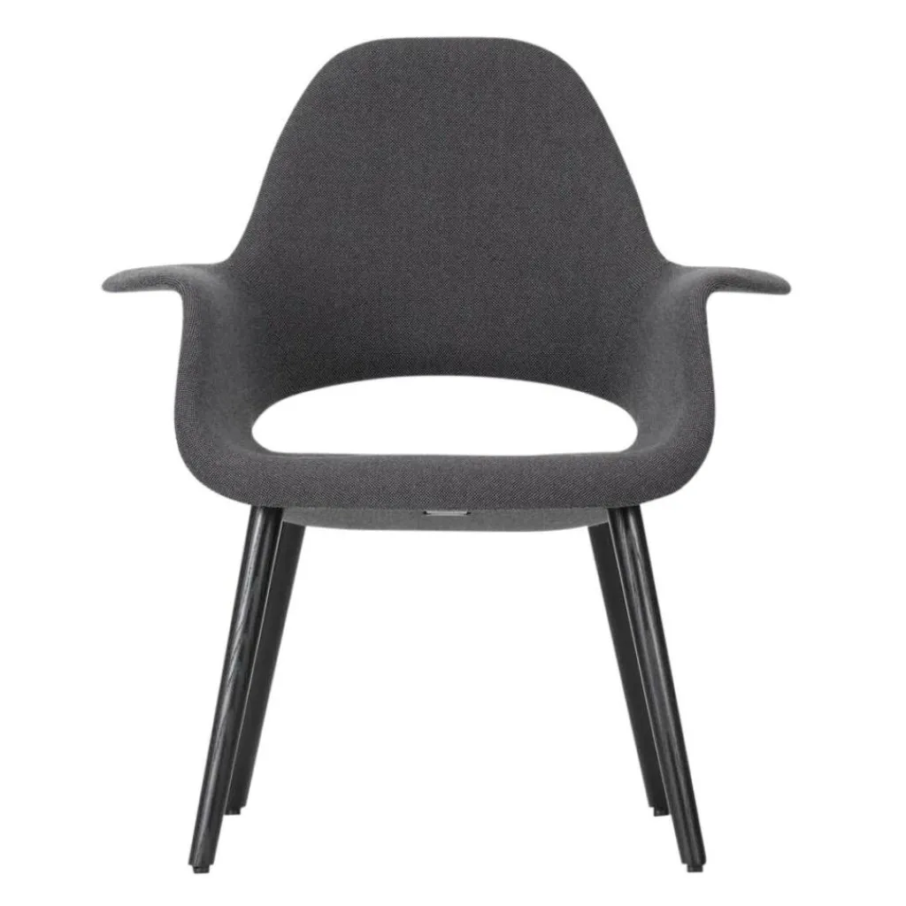 Das Gestell des Organic Chair besteht aus Holz, die Sitzschale laminiert, das Untergestell, sprich die Beine aus Esche schwarz. Eine Polsterung aus Polyurethanschaum macht das Sitzen absolut bequem. Eine leicht nach hinten geneigte Rückenlehne sorgt für zusätzlichen Sitzkomfort. Der komplette Organic Chair von Vitra ist mit einem Stoffüberzug versehen.