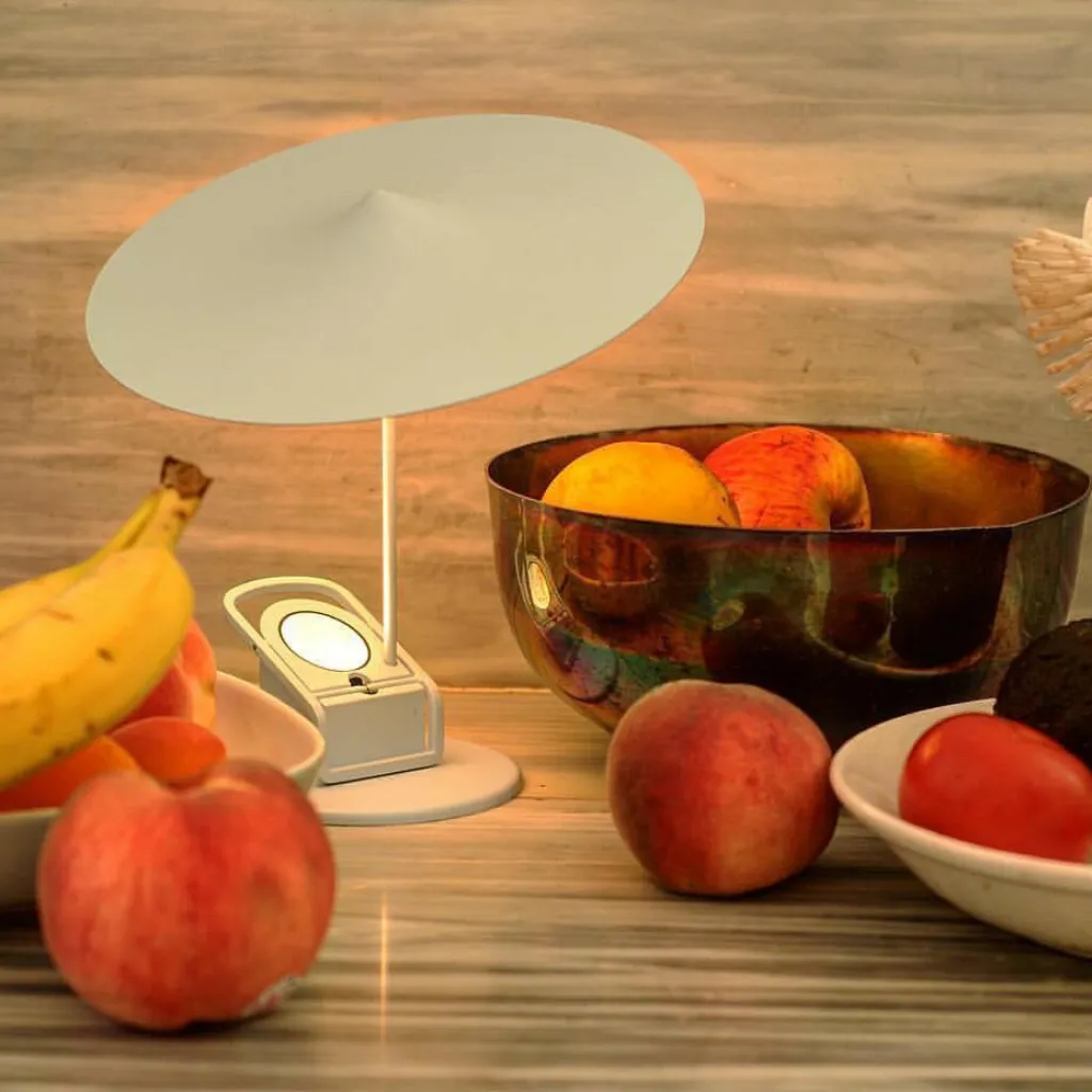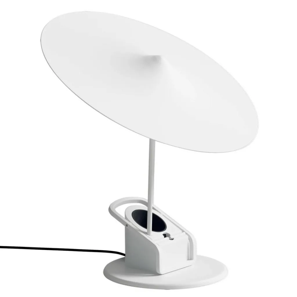 Inspiration für die w153 Île LED Tisch-/Wandleuchte fand Sempé in ihren Kindheitserinnerungen. Ähnliche Klemmleuchten kannte sie vom Aufenthalt in französischen Landhäusern. Das Prinzip ist denkbar einfach: Die stilvolle Leuchte besteht aus einer Klemme, die an der Leuchtmittelfassung angebracht ist. Darauf ist ein kegelförmiger Schirm aus Aluminium befestigt. Dieser wirkt im Vergleich zum Standfuß und dem Rest der Leuchte überdimensional groß. Dank eines magnetischen Kugelgelenks lässt sich der Schirm mit einem Diffusor au PMMA stufenlos und präzise einstellen. Außergewöhnlich ist, dass man das Modell nicht nur an Möbel klemmen kann. Vielmehr lässt es sich an der Wand befestigen und fungiert dank einer runden Basis aus Aluminium auch als Tischleuchte.