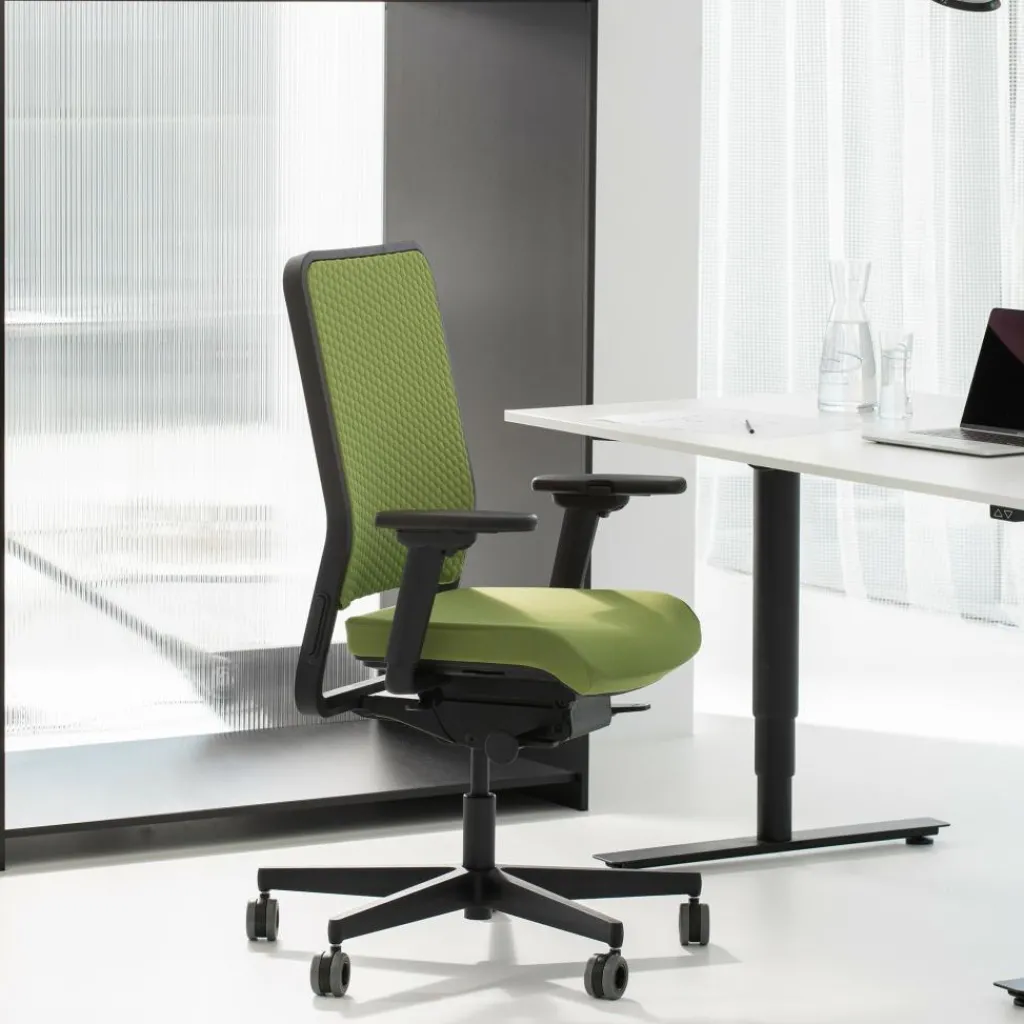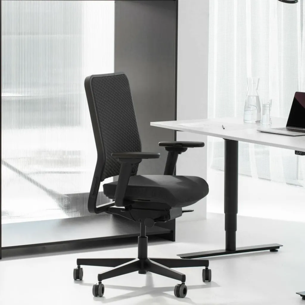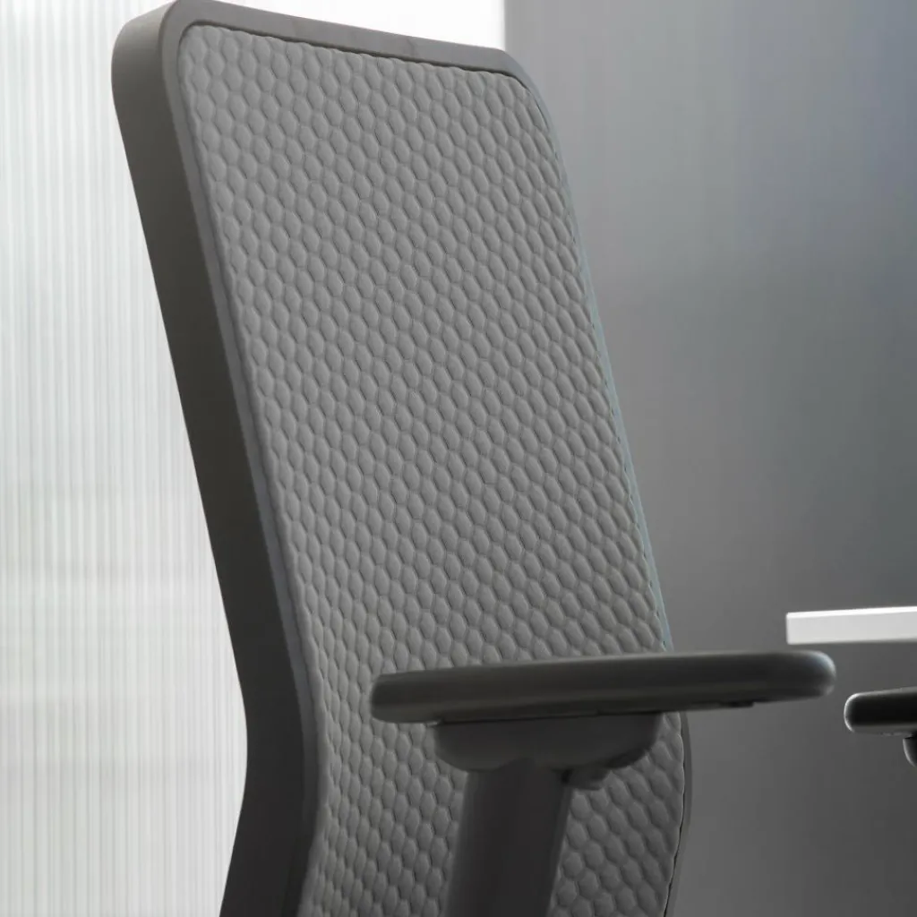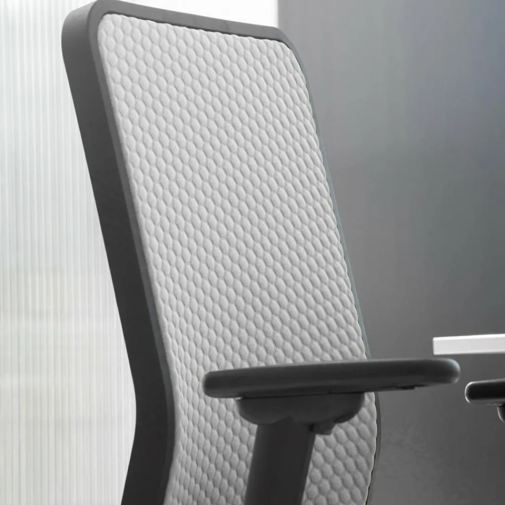 Der W1C Low Bürostuhl Rückenlehne Flachpolster ist mit einem 5-Fuß-Gestell aus Polymer ausgestattet. An der Unterseite befinden sich Designrollen mit einem auffallenden Loch. Innovativ ist die Dondola-Technologie. Dabei handelt es sich um ein Element zwischen Gestell und Sitzfläche, das Körperbewegungen mitmacht. Aus diesem Grund kann man auf den W1C Low Bürostuhl Rückenlehne Flachpolster über viele Stunden bequem sitzen. Die Rückenlehne wird aus Polymer-Werkstoff gemacht. Die Sitzfläche hat eine angenehme Polsterung. Die Armlehnen sind mit einer Soft-Touch-Auflage versehen. Sie ist mit einem Clip-Mechanismus verstellbar.