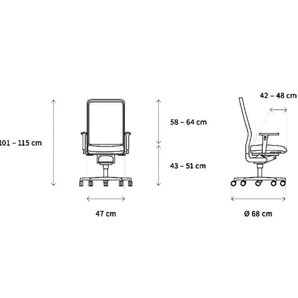 Mit einem seitlich an der Sitzfläche befestigten Hebel kann man die Höhe des W1C Low Bürostuhls Rückenlehne Flachpolster zwischen 101 und 115 cm variieren. Die Sitzhöhe beträgt 43 bis 51 cm. Der W1C Low Bürostuhl Rückenlehne Flachpolster ist 47 cm breit. Das Fußkreuz hat einen Durchmesser von 68 cm. Das Gewicht des Bürostuhls beträgt 18 kg. Die Rückenlehne ist mit 3D-Stoff bespannt. Das Modell ist in verschiedenen Farben zu haben.