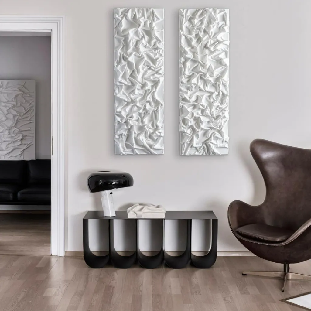 Das SAHAVA Dune 1 Long 3D Wanddekoration 40x120cm 2er Set wurde von der Marke STUDIO MYKODA entworfen. Der Name sagt viel über das auffallende Muster aus: Sahava bezieht sich auf die große Wüste Sahara und Dune heißt auf Deutsch Düne. Auf den ersten Blick scheint das Kunstwerk wie Sand, der durch Wind und andere Witterungseinflüsse in ein beeindruckendes Muster gelegt wurde.