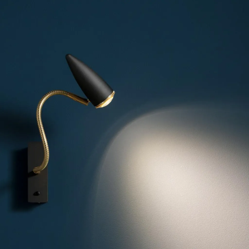 Bei der CicloItalia Flex W1 Wandleuchte setzt Catallani moderne Materialien ein: Der Arm ist aus innovativem Flexmaterial in Messing gefertigt. Er ermöglicht größtmögliche Flexibilität und lässt den Lichtstrahl genau dorthin lenken, wo perfekte Beleuchtung gefragt ist. Außerdem ist am Ende des Armes ein Gelenk montiert, das den Leuchtschirm um 350 Grad drehbar macht. Der Leuchtschirm mit Glaslinse läuft nach hinten hin spitz zu und wird so zum Markenzeichen der CicloItalia Flex W1 Wandleuchte. Zur Montage an der Wand dient eine rechteckige Befestigung. Darin ist auch der Schalter integriert.
