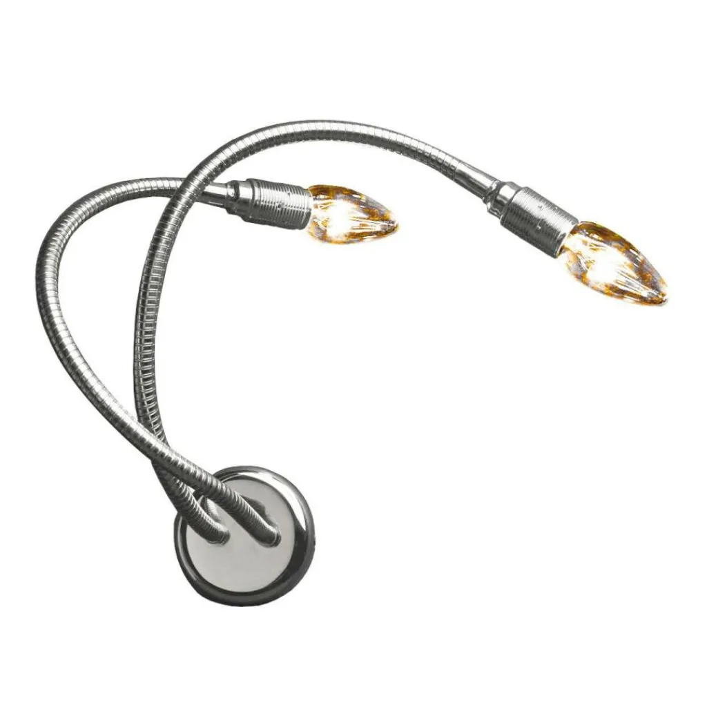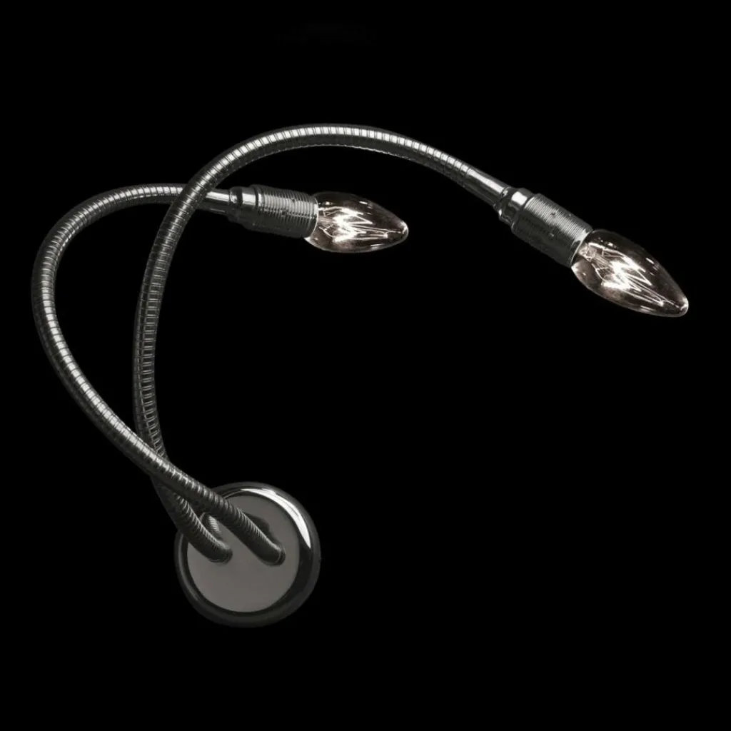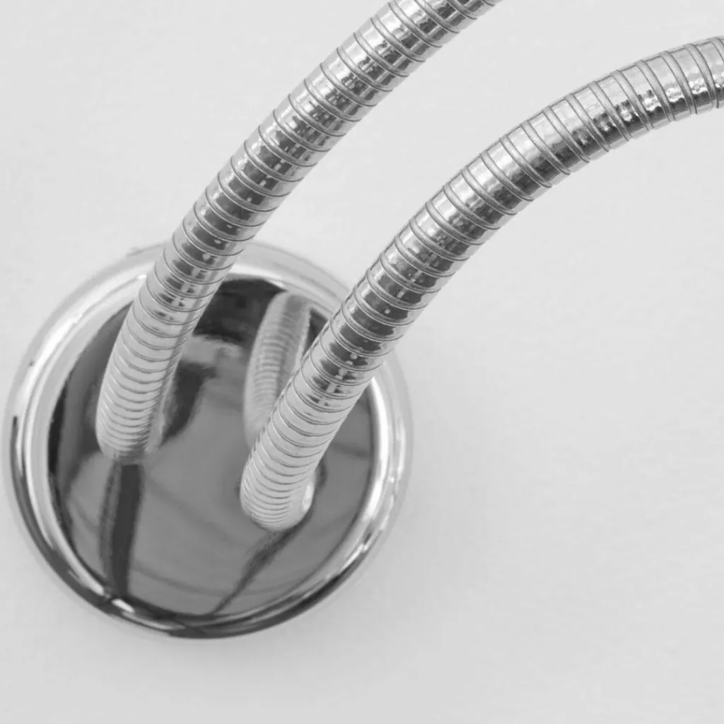 Die Besonderheit der Turciù 2 Wandeleuchte liegt in ihren flexiblen Armen. Die Teleskoparme animieren regelrecht zum Experimentieren. Die Zahl im Namen weist darauf hin, dass das Modell mit zwei Armen ausgestattet ist. Die Leuchte ist aus Messing oder Nickel gefertigt. Zur Befestigung an der Wand dient eine Rosette, daraus entspringen flexible Rohre, die ein wenig an einen Duschschlauch erinnern. Man kann sie um nahezu 360 Grad drehen und in sich biegen, ganz wie es gefällt. Dadurch fällt der Lichtstrahl genau dorthin, wo perfekte Lichtverhältnisse gefragt sind. Da die Turciù 2 Wandeleuchte ohne Leuchtenschirm auskommt, ist der Blick auf die beiden Leuchtmittel mit einer E14-Fassung frei. Die Leuchtmittel sind im Lieferumfang enthalten.