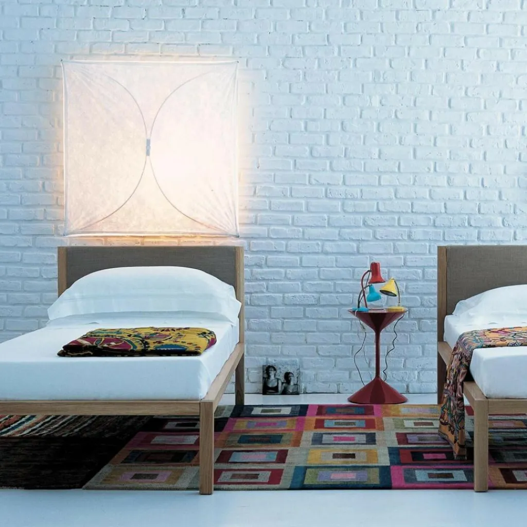 Praktisch ist, dass man die Ariette 1 Wand-/Deckenleuchte sowohl an der Wand als auch an der Decke montieren kann. Dazu dient ein Gestell aus 30% glasfaserverstärktem Polyamid. Es wird an die Wand oder Decke geschraubt. Für die Ariette 1 Wand-/Deckenleuchte werden vier Leuchtmittel mit E27-Fassungen benötigt, die in die entsprechenden Halterungen im Rahmen geschraubt werden. Über das Gestell sind zwei gebogene Stäbe aus Polyamid befestigt. Sie beschreiben einen Halbbogen und sorgen dafür, dass der über den Rahmen gezogene Stoff aus Polyethylen gespannt bleibt. Er lässt diffuses Licht durch. Somit sorgt die Ariette 1 Wand-/Deckenleuchte für eine wohnliche Atmosphäre. Das Licht wird nach unten weitergeleitet. Wird die Ariette 1 Wand-/Deckenleuchte eingeschaltet, wirkt der Stoff ein wenig wie Pergament.