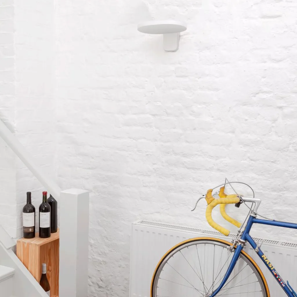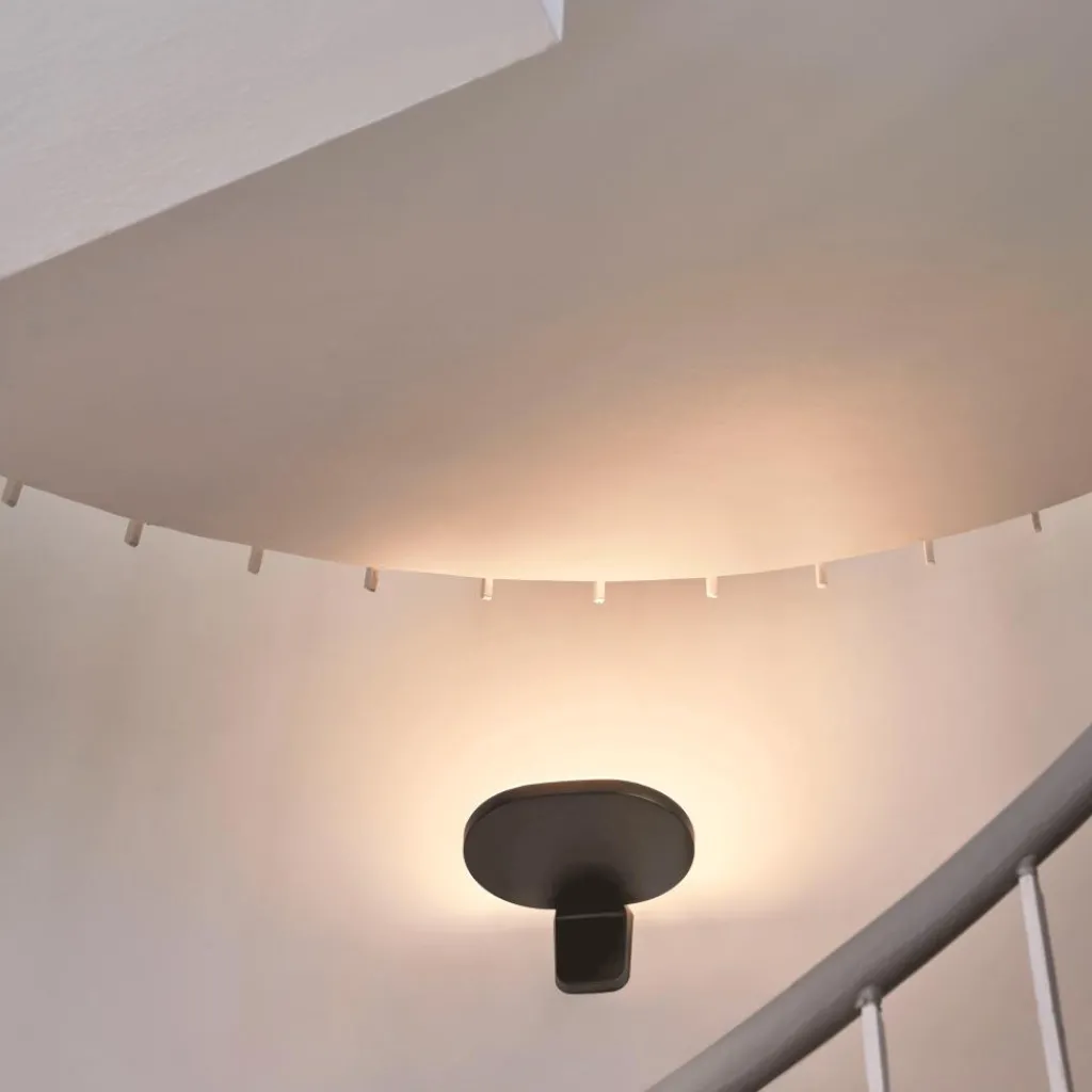 Die Gestalt der Oplight W1 Wandleuchte ist durch harmonische Rundungen und einfache Formen geprägt: Eine ovale Scheibe bildet ihren Kopf. Die Wandbefestigung ist eine Platte mit abgerundeten Ecken. Alle Kanten sind sanft gerundet. Damit wirkt die Oplight W1 Wandleuchte im ausgeschalteten Zustand wie eine formschöne Konsole. Eingeschaltet strahlt sie ihr Licht nach oben, das die Wand in ein angenehm weiches Streiflicht taucht und nach unten hin blendfrei abgeschirmt ist – ein perfektes indirektes Licht für Flur oder Treppenhaus. Leuchtenkörper und Befestigung der Oplight W1 Wandleuchte bestehen aus pulverbeschichtetem Aluminiumdruckguss. Ihr Diffusor ist aus einem halbtransparenten Polycarbonat hergestellt.