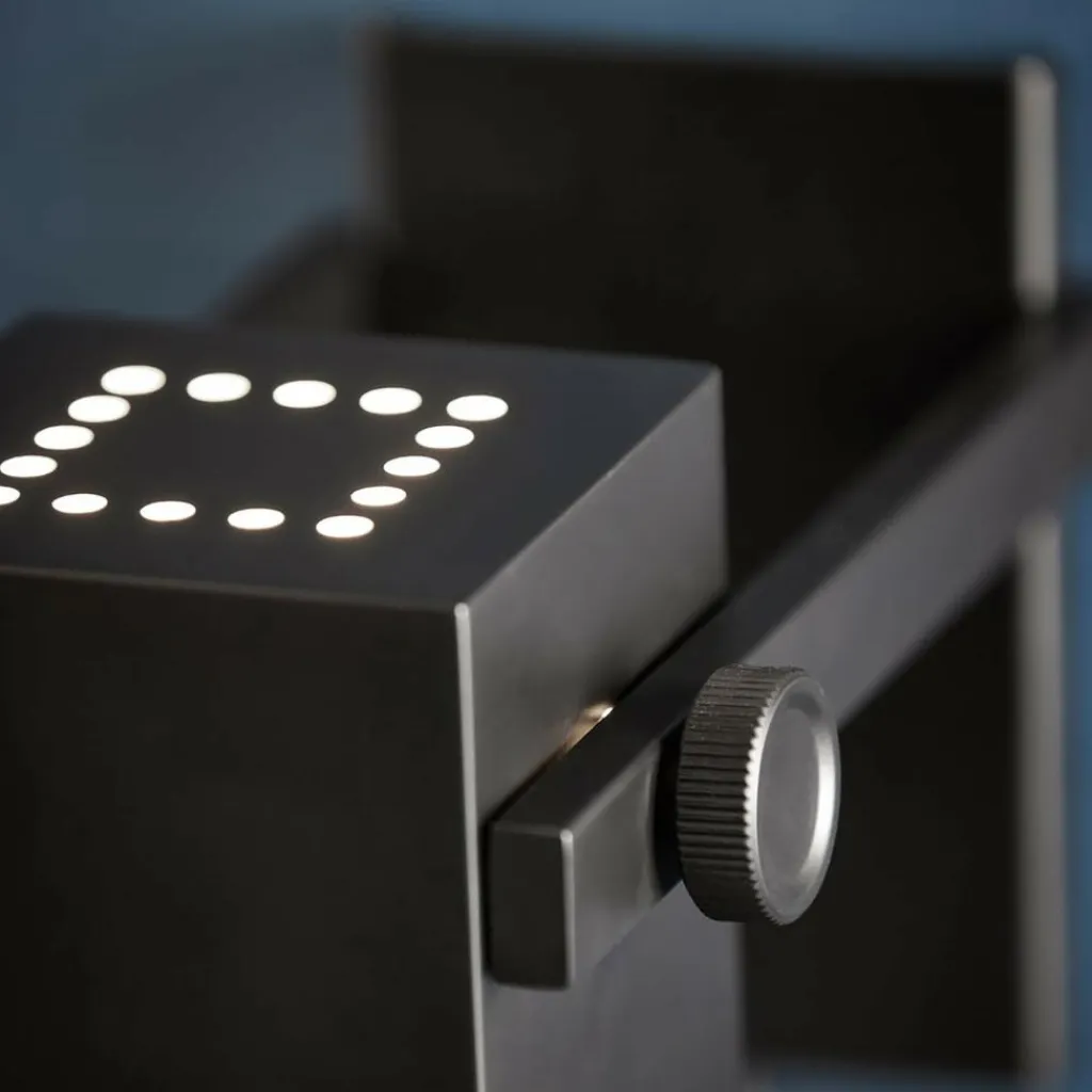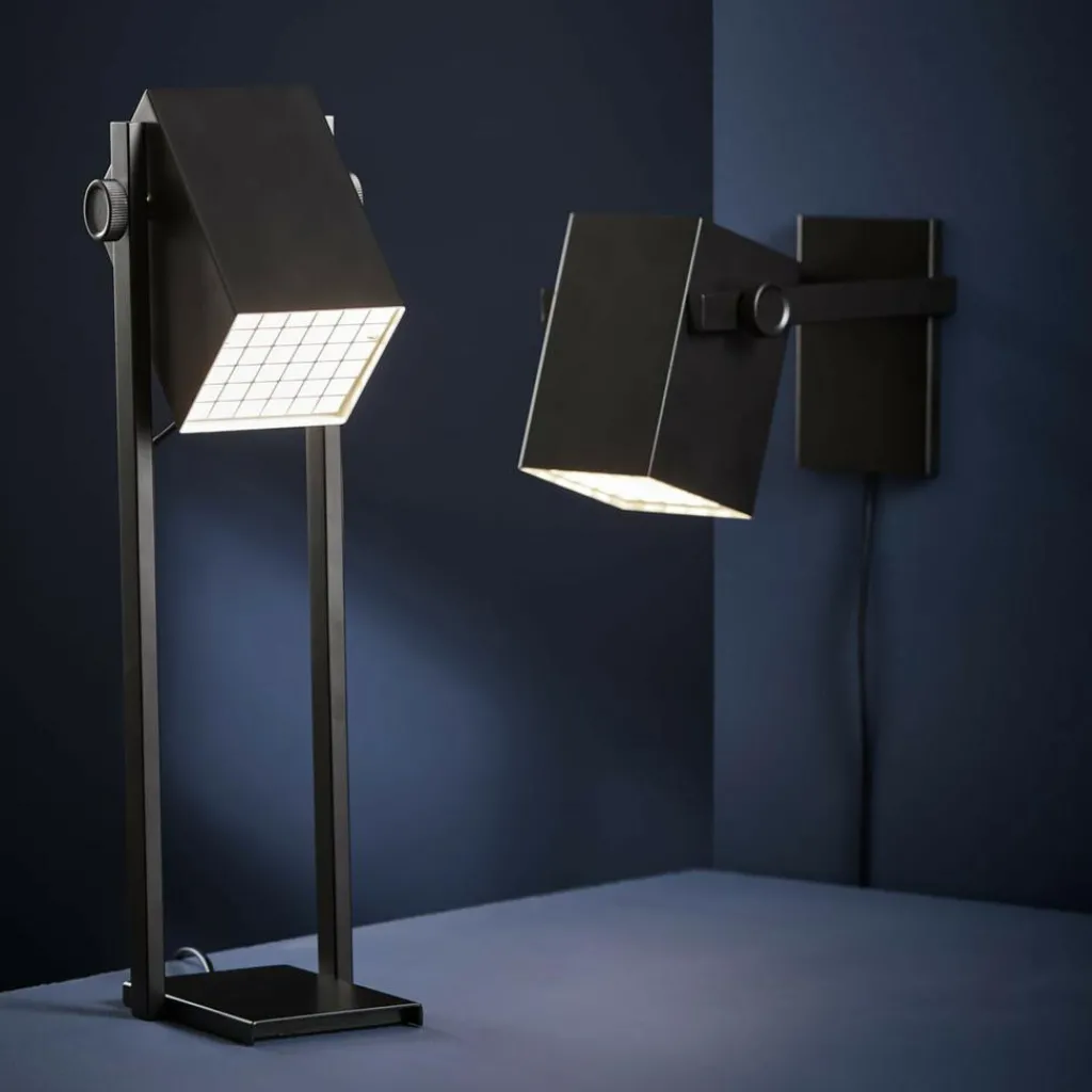 Mit ihrem namensgebend markant quaderförmigen Design findet die BF Quadro Wandleuchte ihren vielseitigen Platz als an der Wand montierte Nachttischleuchte, Schreibtischleuchte oder kleine Leuchte neben dem Sofa. Zwei vertikale Streben und eine rechteckige Sockelplatte bilden die Basis. Der kantige Leuchtenschirm in Quaderform ist jeweils mit einem Drehgelenk zwischen den beiden Streben eingefasst. Dadurch kann er nach oben und unten geschwenkt werden und wahlweise als direkte Lichtquelle oder als sanftes Stimmungslicht genutzt werden. Ein schönes Detail ist das gleichmäßige Gitterdesign des Diffusors. Hinter diesem verbirgt sich das Leuchtmittel – es wird eines mit E14-Fassung benötigt. Die BF Quadro Wandleuchte ist aus pulverbeschichtetem Aluminium gefertigt und misst 14cm Länge, 21cm Breite und 14cm Höhe bei 1,6kg Gewicht.