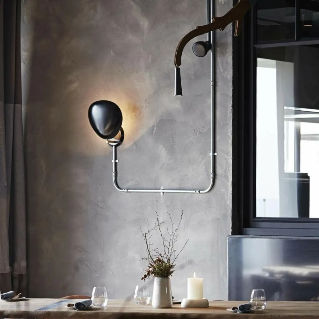 Inspiriert ist der oval geformte Leuchtenschirm der Cobra Wandleuchte von GUBI vom Kopf einer Kobra, worauf ihr Name verweist. Die Wandleuchte ist auch so wendig wie eine Schlange, denn der röhrenförmige Arm lässt sich um 90° in die Horizontale neigen. Der Schirm der legendären Design-Leuchte ist selbst um 360° drehbar.