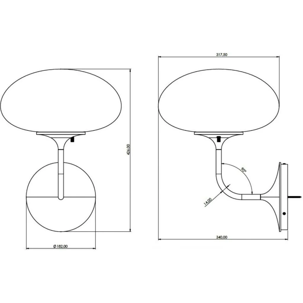 Vorgestellt wurde die Stemlite Wandleuchte im Jahr 1962. Inspiration fand der Designer in der Natur: Das Gestell erinnert an Blumenstengel und sie geben dem Modell seinen Namen: Er setzt sich aus dem englischen Wort für Stengel und einer Abkürzung für Licht zusammen. Die Stemlite Wandleuchte scheint regelrecht aus der Wand zu wachsen. Aus einer runden Halterung entspringt ein Rohr, das in einem harmonischen Bogen im 90°-Winkel senkrecht zum Leuchtenschirm führt. Das Gestell besteht aus druckgegossenem Metall. Der imposante ovale Leuchtenschirm wird aus mundgeblasenem Glas gefertigt.
