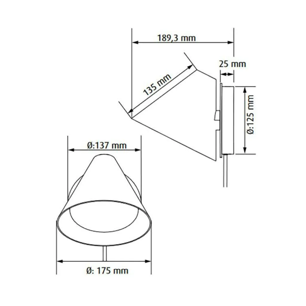 Die 0,85 kg schwere Keglen LED Wandleuchte 3000K ist 17,6 cm hoch. Die Breite beträgt 14,2 cm und die Tiefe 18,8 cm. Mit ihren schmalen Abmessungen passt sie hervorragend in kleine Räume. Sie kann mit einem 2,4 m langen Kabel an den Stromkreis angeschlossen oder direkt mit der Stromquelle verbunden werden.