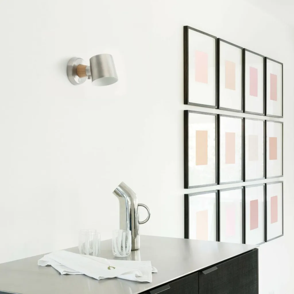 Die Rise Wandleuchte Hardwired Edelstahl beschränkt sich auf die wesentlichen Elemente einer schlichten Leuchte: Die Halterung mit Eschenholz verbreitet wohnliches Flair. Daran ist ein zylinderförmiger Leuchtenschirm aus elegantem, pulverbeschichtetem Edelstahl montiert. Die beiden Elemente verbindet ein Gelenk. Mithilfe eines kleinen Hebels kann man die Rise Wandleuchte Hardwired Edelstahl um 350 Grad schwenken. Das macht sie zur perfekten Lichtquelle am Arbeitsplatz oder im Schlafzimmer. Sie setzt auch Dekorationsobjekte im Raum ideal in Szene. Die Rosette zur Wandbefestigung besteht ebenfalls aus Edelstahl.