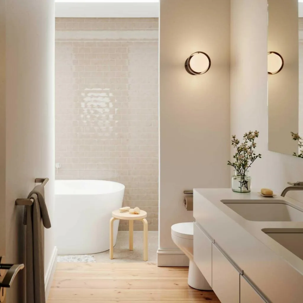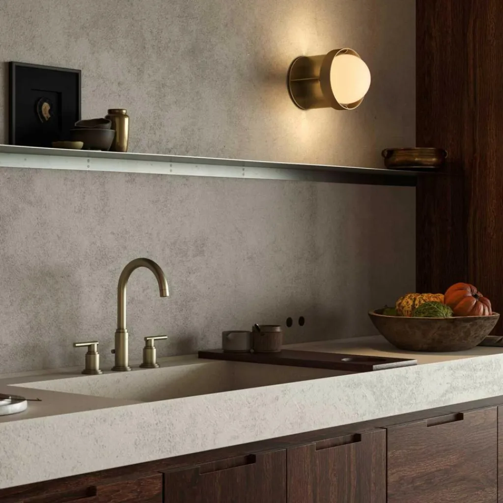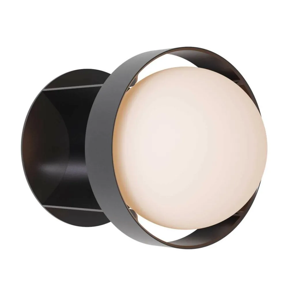 Die Loop Wandleuchte L + Sphere IV fällt mit einer sternförmigen Halterung auf. Sie ist an einer dünnen Scheibe befestigt, die zur Befestigung an der Wand dient und endet in einem eleganten Ring. Dieser umspannt das Leuchtmittel. Das Gestell wird aus Aluminium gemacht. Das langlebige Material kann recycelt werden. Im Lieferumfang ist das Leuchtmittel Sphere IV enthalten. Es wird mit seiner runden Form auch zum Blickfang, wenn die Loop Wandleuchte L + Sphere IV gerade nicht eingeschaltet ist. Das Leuchtmittel spendet warmweißes Licht, das in alle Richtungen strahlt. Man kann die Loop Wandleuchte L + Sphere IV mit einem Dimmer kombinieren. Das Modell ist in Schutzart IP44 gefertigt und daher auch für das Badezimmer geeignet.