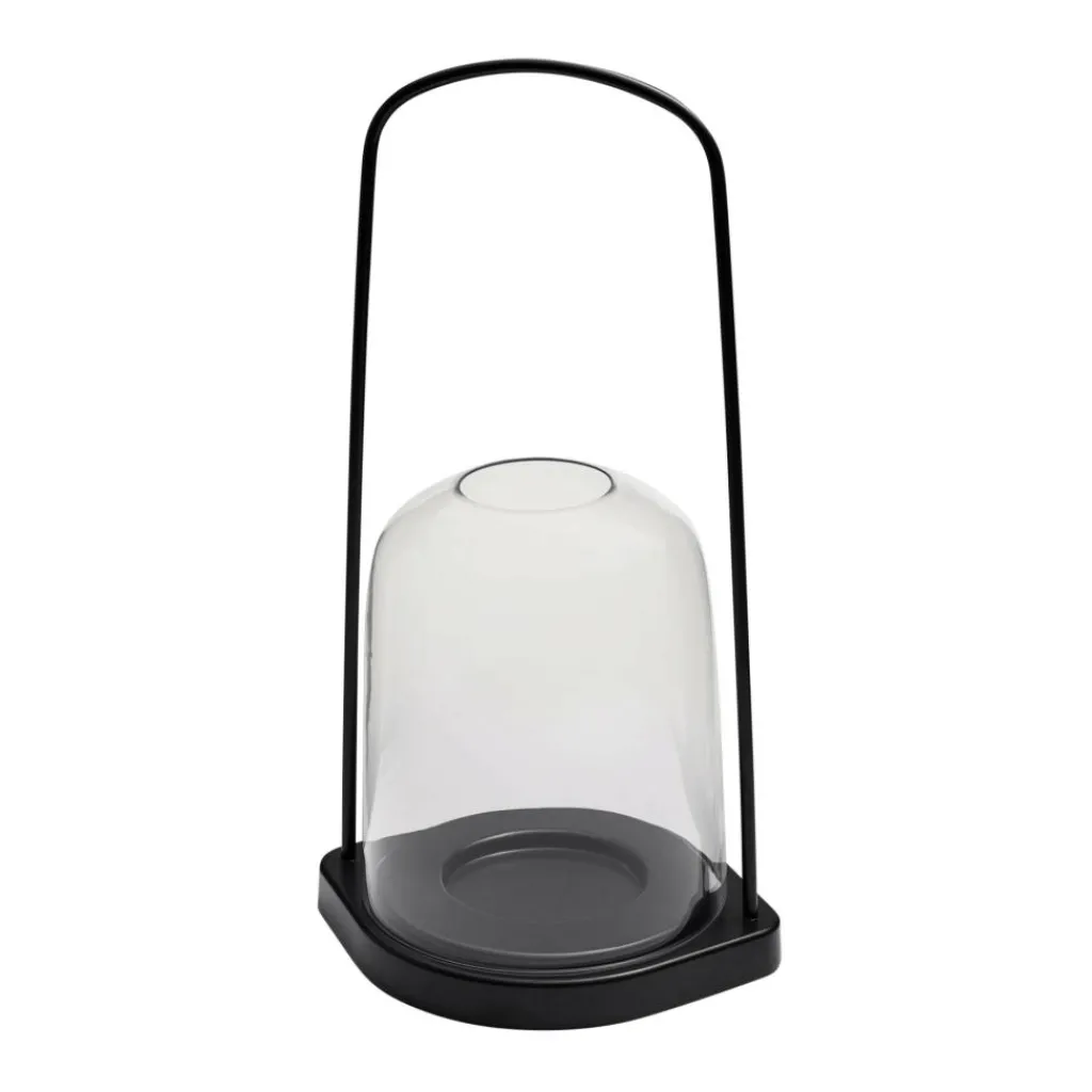 Auch die Bell Laterne Ø 25cm begeistert mit einer schlichten Form, die ihre Funktionalität zusätzlich unterstreicht. Der Glasdeckel, der mit einer Öffnung am oberen Ende ausgestattet ist, ist dabei auf einer pulverbeschichteten runden Stahl-Basis platziert, mit der ein geschwungener Griff aus Aluminium verbunden ist. Die klaren und doch feminin-runden Formen zeugen von einem Streben nach Harmonie mit der übrigen Dekoration. Im Inneren platzieren Sie eine Kerze, deren flackerndes Licht sich ohne jegliche Brechung den Weg durch das transparente, mundgeblasene Glas bahnen kann. Sowohl im Innen- als auch im Außenbereich setzen Sie mit diesem an eine Laterne erinnernden Kerzenhalter einen spannenden Akzent, der die skandinavischen Designtraditionen auf eine wundervolle Art wiedergibt.