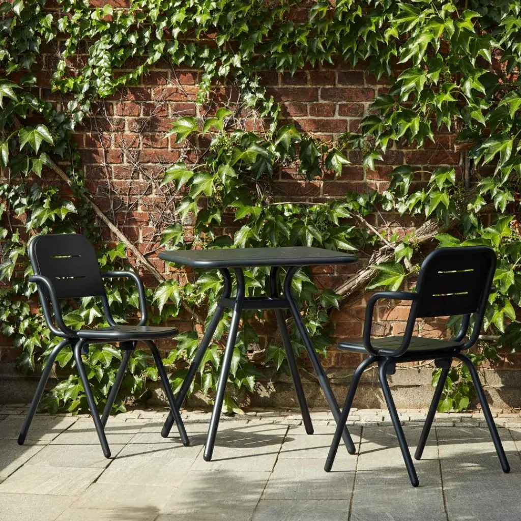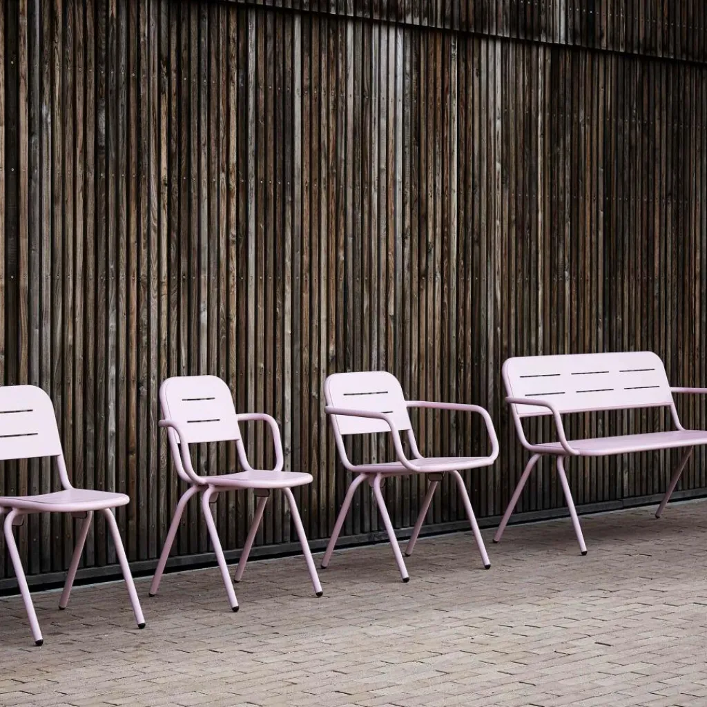 Der Ray Gartenarmlehnstuhl wurde von Henrik Rolff und Rasmus Fasting für die Marke Woud entworfen. Er gehört zu einer umfangreichen Serie an Outdoormöbeln, die insgesamt 12 Entwürfe umfasst. Die schlichte Linienführung ist ein Markenzeichen der Kollektion, die sich für den Garten, den Balkon oder die Terrasse ideal eignet.