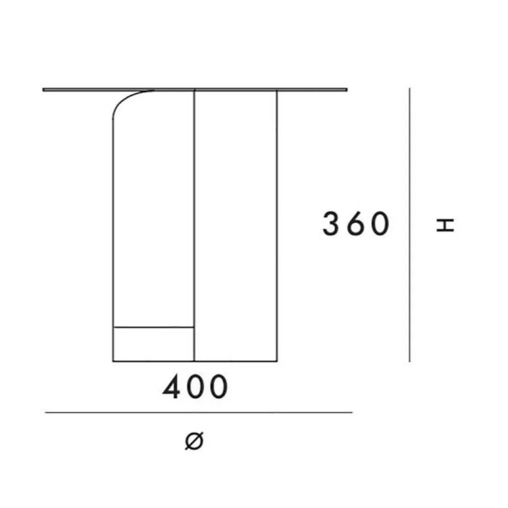 Der Sentrum Beistelltisch ist 10,5 kg schwer und 36 cm hoch. Die Tischplatte hat einen Durchmesser von 40 cm. Die Ablageflächen sind 27,7 cm lang und 10,6 cm breit.