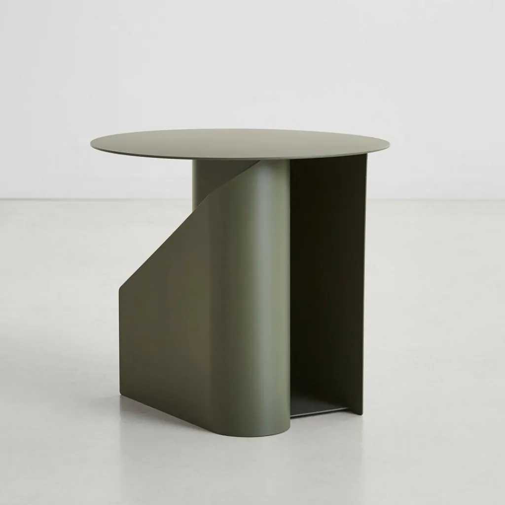 Der Sentrum Beistelltisch wurde von Maximilan Schmahl und Fabian Schnippering für die Marke Woud entworfen. Bei dem Entwurf wird auf den ersten Blick deutlich, dass die beiden an der Bauhaus-Universität in Weimar studierten. Ganz nach der weltberühmten Schule reduzierten die beiden auch beim Sentrum Beistelltisch das Design auf das Wesentliche. So reduziert sich der Entwurf auf bekannte geometrische Formen wie den Kreis, die Diagonale und das Trapez.