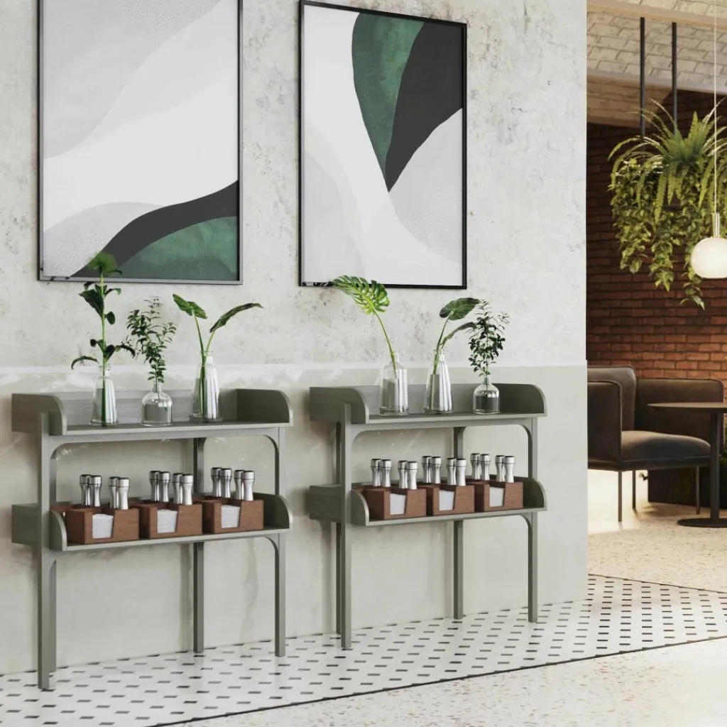 Die britische Designerin ging mit dem Anspruch an den Entwurf des Utility Regal s heran, eine Kombination aus Kommode und eines offenen Regals zu erschaffen. Deswegen verwendet sie Einlagebretter, die an drei Seiten mit einem Rahmen versehen sind. Er verhindert, dass auf dem Utility Regal abgestellte Gegenstände herunterfallen. Der Rahmen besteht aus massivem Eichenholz. Für die beiden Einlagebretter verwendet Heritage Eichenfurnier. An der Vorderseite beschreibt der Rahmen einen harmonischen Bogen nach vorne. Vier gerade geschnittene Füße sichern besten Stand. Auffallend ist, dass die beiden hinteren Beine nach innen versetzt sind. Man kann das Utility Regal in verschiedenen Farben bestellen. Es gibt unzählige Einsatzmöglichkeiten für das schlichte Regal: Es eignet sich für die Aufbewahrung von Geschirr in der Küche, für die Ablage von Handtüchern im Badezimmer oder als Stauraum für Arbeitsutensilien im Büro.
