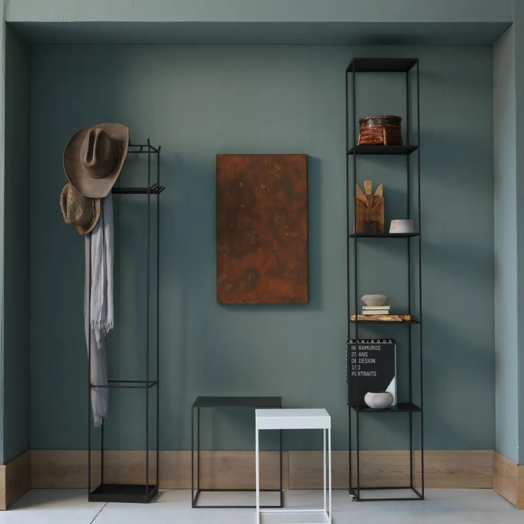 Der Slim Irony Kleiderständer 34x34x169cm wurde von Maruizio Peregalli für die Marke Zeus entworfen. Er ist Teil einer Serie von Aufbewahrungsmöbeln aus Metall, die mit ihrer schlanken Konstruktion auffallen. Dabei unterstützt das formale Design die Funktion, sorgt aber gleichzeitig für dekorative Hingucker.