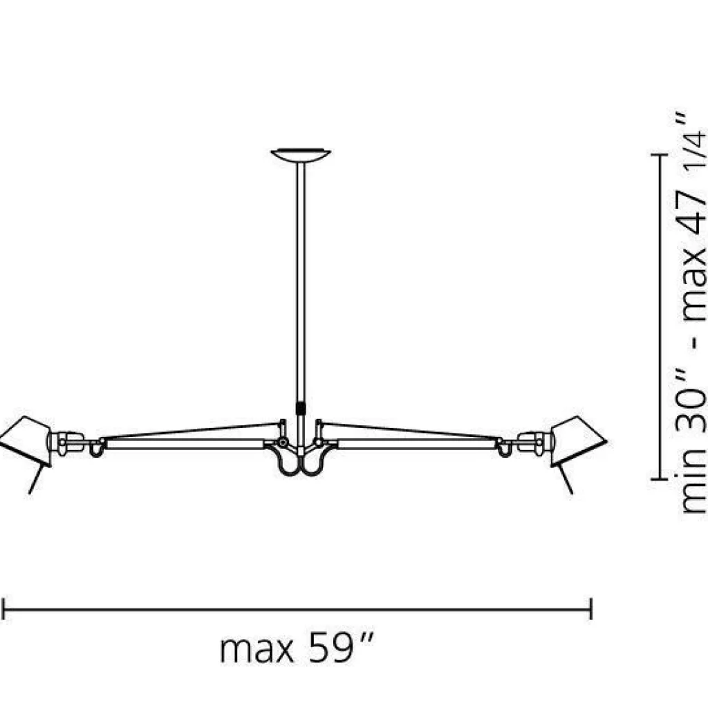Die Abhängungshöhe der Tolomeo Sospensione Deckenleuchte beträgt 200 cm. Die Leuchte ist 150 cm breit und 76 cm hoch. Sie benötigt 2 Leuchtmittel mit E27-Fassungen. Geeignet ist die Tolomeo Sospensione Deckenleuchte für das Büro oder Homeoffice, jedoch auch für den Wohnbereich.