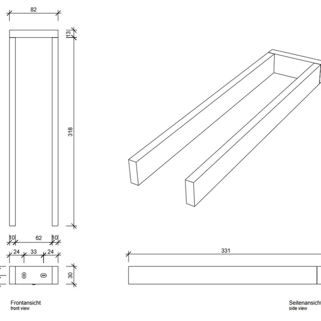 | Abmessungen | Breite: 8cm Höhe: 3cm Tiefe: 33cm |