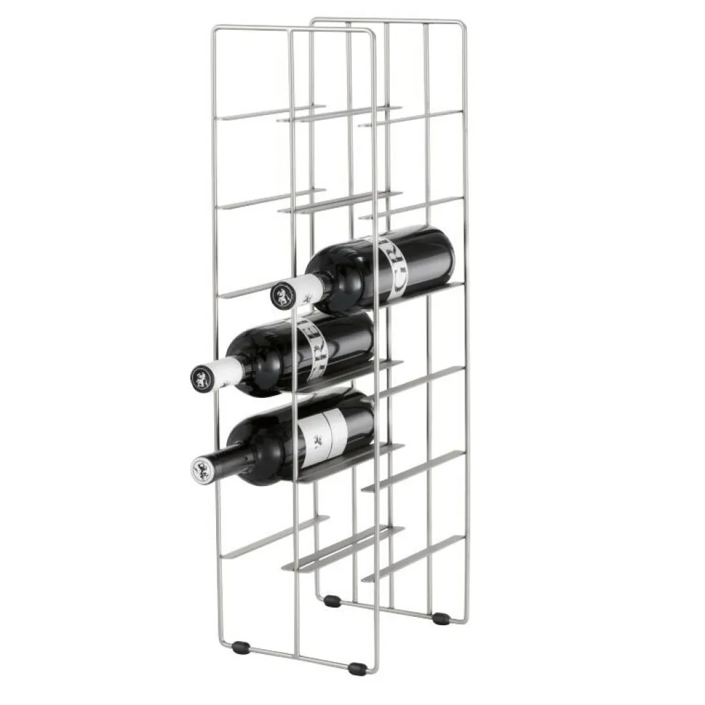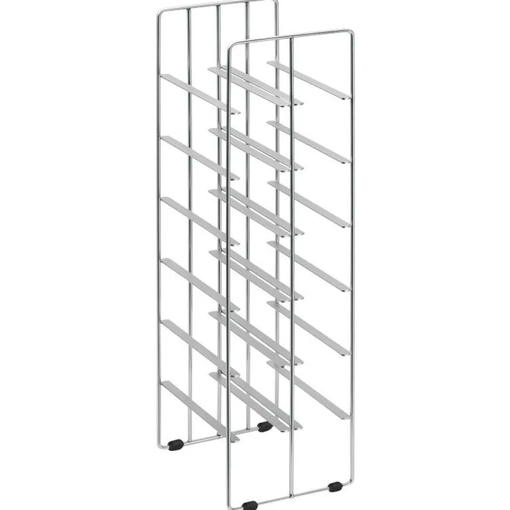 Das praktische Pilare Weinregal ist aus vernickeltem Edelstahl gefertigt. Die hochqualitative Verarbeitung sorgt für ein ausbalanciertes Regal, das selbst dann, wenn es nur mit wenigen Flaschen bestückt ist, einen stabilen und sicheren Stand aufweist. An den Füßen des Regals sind Gummibeschichtungen angebracht, die für einen rutschsicheren Stand sorgen und den empfindlichen Parkettboden vor unschönen Abdrücken schützen.