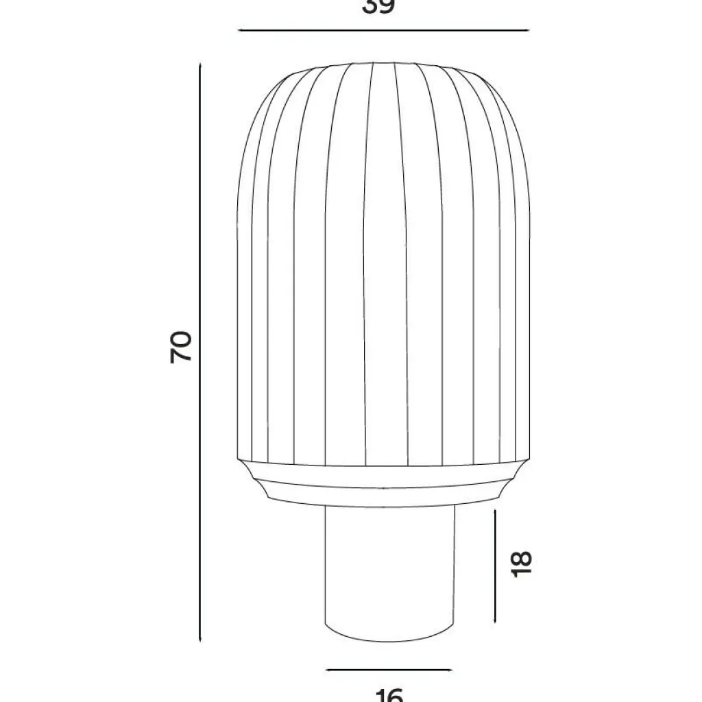 | Abmessungen | Höhe: 70cm Durchmesser: 39cm Kabellänge: 200cm Durchmesser Schirm: 39cm Durchmesser Fuß: 16cm |