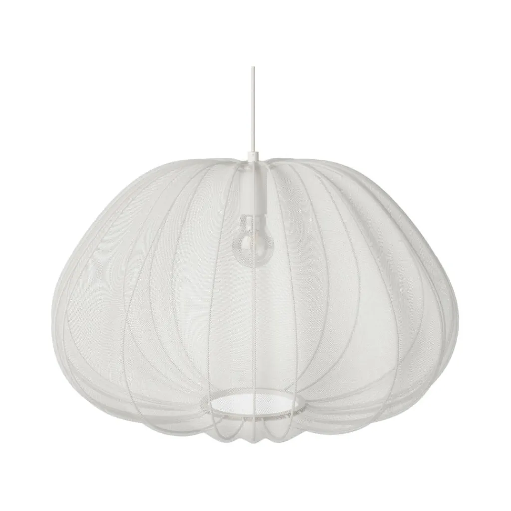 Der durchsichtige Stoff verleiht der Balloon Pendelleuchte Ø 57cm einen eleganten Ausdruck, der an Laternen erinnert. Es entsteht ein verspielter Effekt, der dadurch unterstrichen wird, dass das Licht sanft reflektiert wird. Das filigrane gefärbte Stahlgestell sorgt dafür, dass die Leuchte ihre Form beibehält. Zudem entsteht durch die sichtbaren Streben eine schöne Unterstreichung der Dreidimensionalität. Der Stoff, der die Leuchte umfasst, besteht zu 92 % aus Nylon und zu 8 % aus Elastan. Die Transparenz des Stoffs macht die Leuchte zu einer unaufdringlichen und leichten Deckenleuchte. Der Leuchtenschirm ist 57 cm breit, seine Höhe beträgt 35,5 cm. Die Leuchtmittelhalterung ist in derselben Farbe wie das Gestell und auch das drei Meter lange Textilkabel entspricht der Farbauswahl. Dank des langen Kabels ist die Pendelleuchte insbesondere für sehr hohe Räume geeignet. Die Balloon Pendelleuchte Ø 57cm wird ohne passendes E27 Leuchtmittel geliefert. Die Leuchtfarbe kann über das jeweils gewählte Leuchtmittel definiert werden. Wenn Sie ein dimmbares Leuchtmittel wählen und es Ihr elektrisches System zulässt, kann die Pendelleuchte in eine dimmbare Deckenleuchte verwandelt werden.