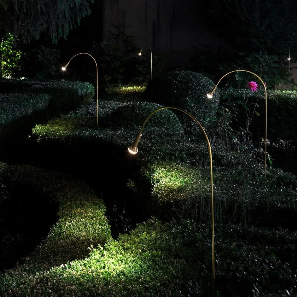 Die zarte Syphaduepassi Außenstehleuchte steht im wunderbaren Kontrast zu den sonst eher üblichen robusten Gartenleuchten. Mit 2700 Kelvin und 150 Lumen schafft sie ein warmes Licht, das ihre Terrasse oder den Wintergarten ebenso beleuchtet wie das Wohnzimmer. Dekorieren Sie Ihren Garten gleich mit mehreren dieser hübschen Leuchtspots von Catellani & Smith. Sie ist in unterschiedlichen Größen und verschiedenen Kabellängen erhältlich und kann im Garten locker arrangiert werden.