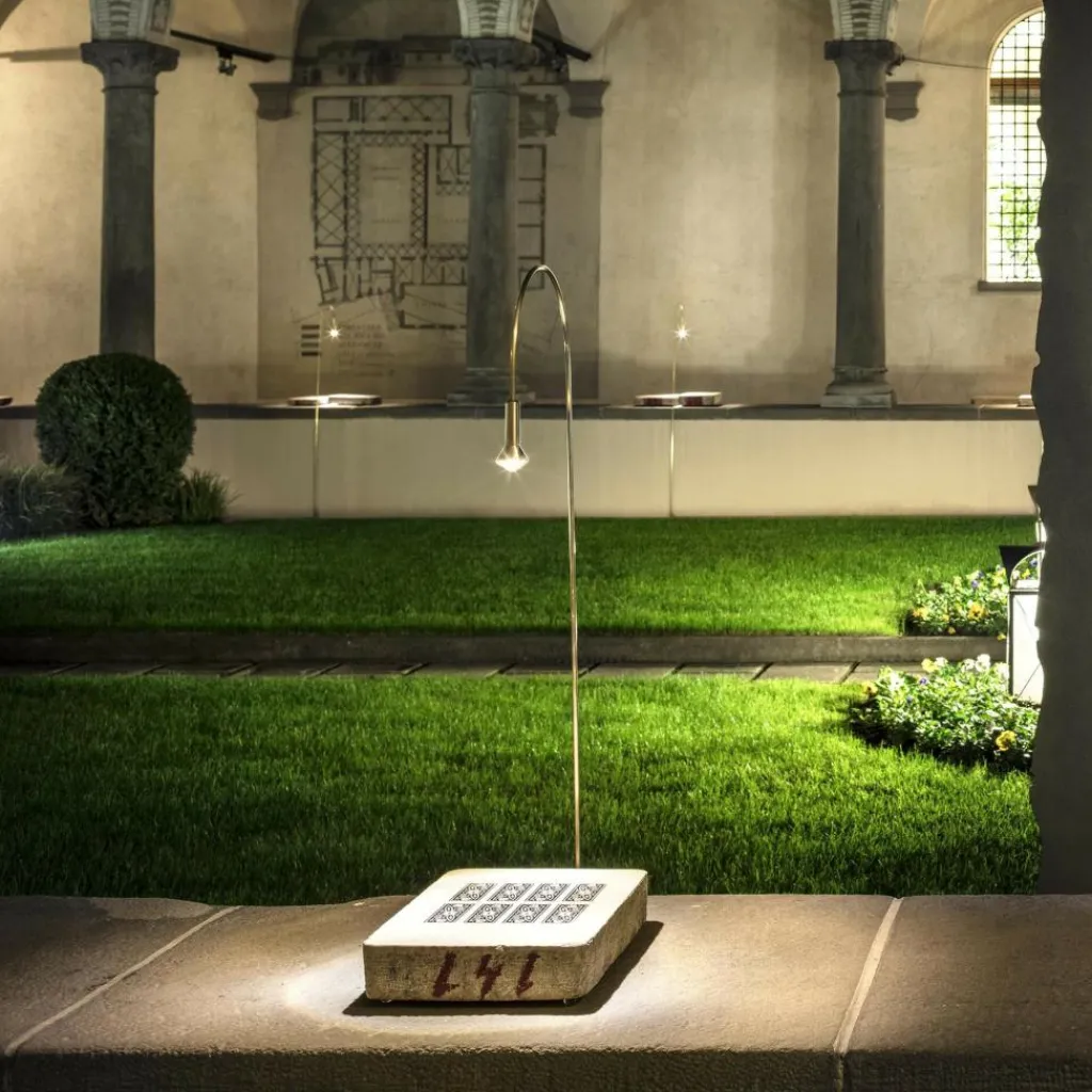 Die Syphaduepassi Außenstehleuchte wurde von dem italienischen Designer Enzo Catellani für die Marke Catellani & Smith entworfen. Auch mit seiner zweiten Leuchte begibt sich Catellani auf die Suche nach der „magischen Einfachheit“. Diesmal ist es der Pointillismus: Jede Leuchte zaubert ein Muster in Ihrem Garten, beleuchtet Details und schafft Atmosphäre.