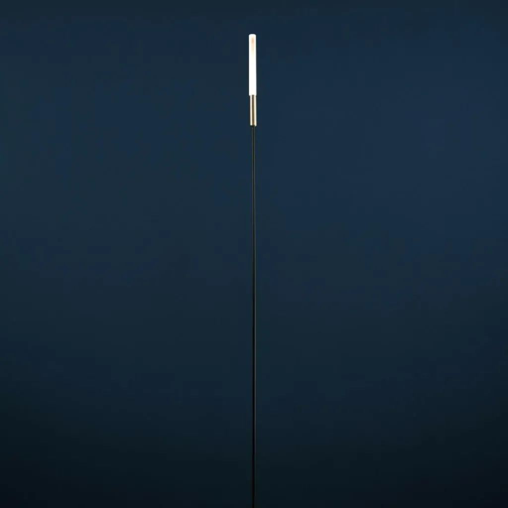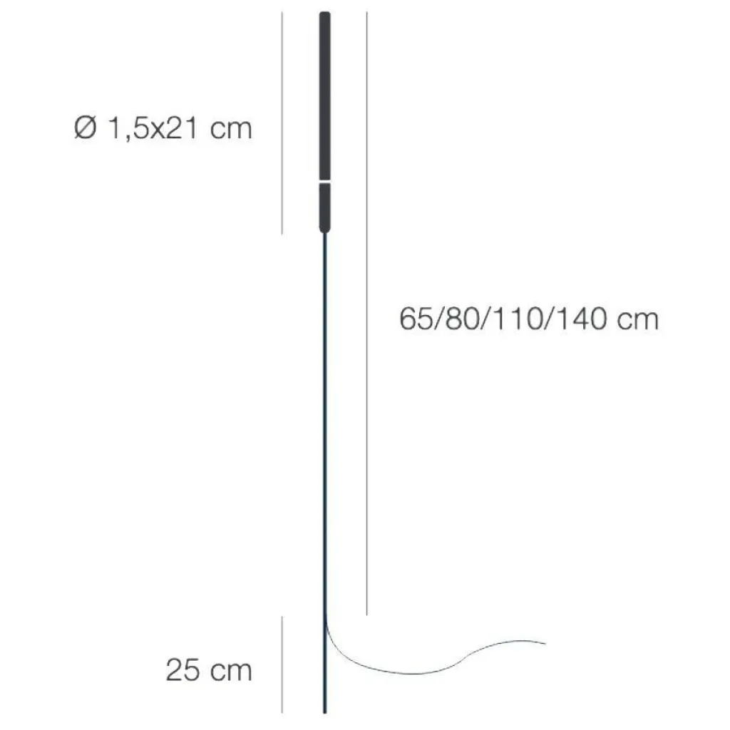 Entsprechend hochwertig ist die in verschiedenen Höhen verfügbare Syphasera Außenstehleuchte gefertigt. Ihr strahlend weißer Leuchtkörper aus Opalglas hat eine Höhe von 21 cm sowie einen Durchmesser von 1,5 cm und ist auf einem schmalen Korpus befestigt. Mithilfe eines 25 cm langen Erdspießes wird die Leuchte in der Erde befestigt. Das mitgelieferte Leuchtmittel wird mit 12 Volt betrieben. Die Stromkabel sind in unterschiedlichen Längen erhältlich.