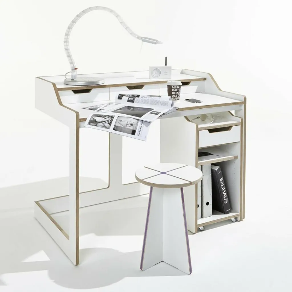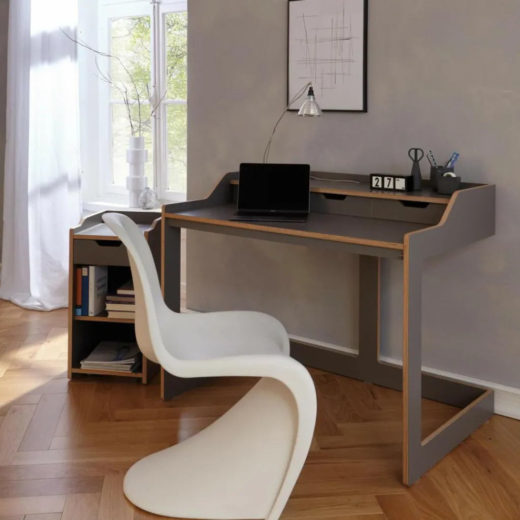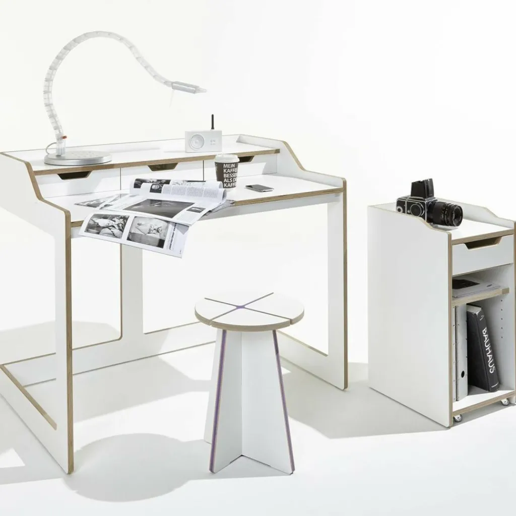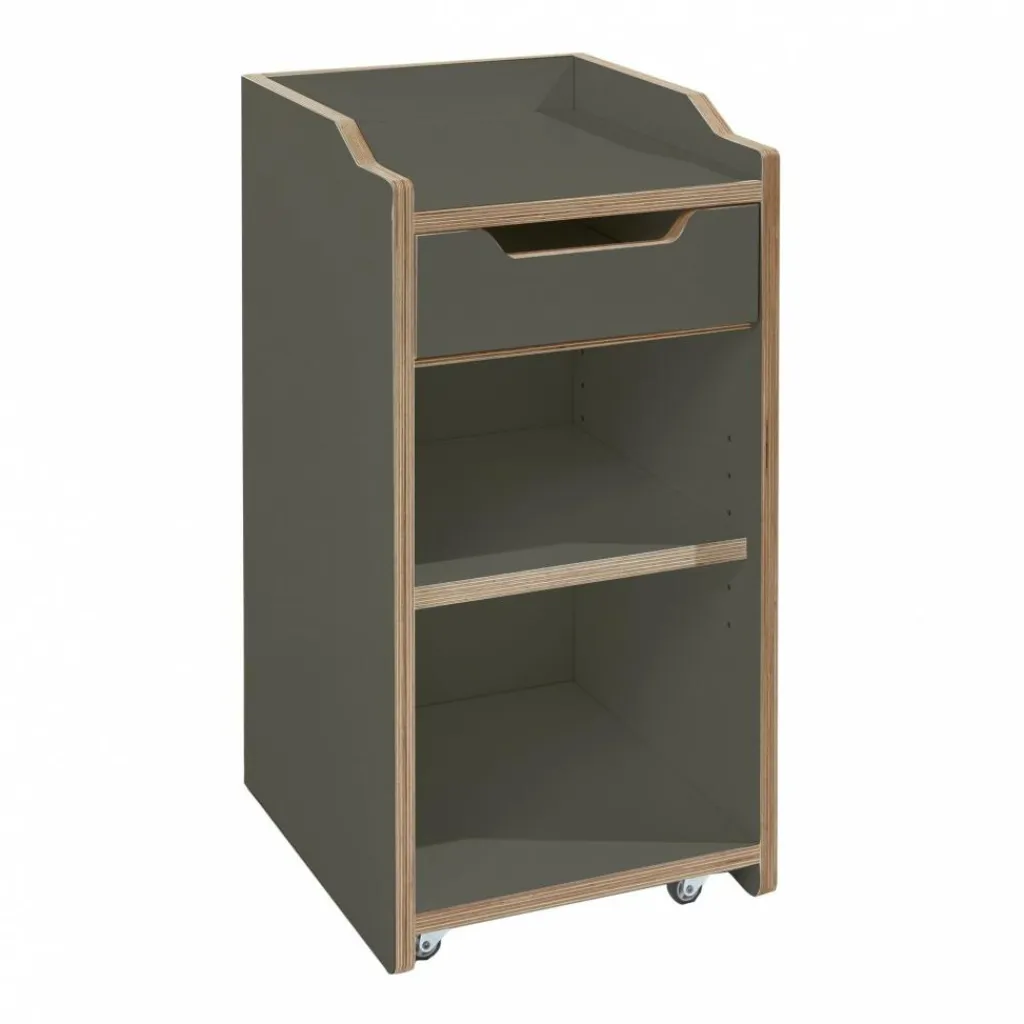 Mit einer geräumigen Schublade, einem frei positionierbaren Fachboden und einer oberen Ablagefläche bietet der Plane Rollcontainer ohne Tür für jeden Anlass den passenden Stauraum. Bücher finden darin hochkant Platz, Zeitschriften liegend. Die obere Deckfläche ist an drei Seiten umrahmt, sodass nichts aus dem Blickfeld rutschen kann. Und die Lade verfügt über einen praktischen Selbsteinzug. Hergestellt aus robustem Birkenschichtholz zeichnet sich der Plane Rollcontainer ohne Tür durch eine belastbare Robustheit aus. Die glatte CPL-Beschichtung verleiht ihm einen sauberen und aufgeräumten Charakter. Sichtbare Schichtholzkanten schaffen gleichzeitig einen verspielten Blickfang. Da das Material aus regionaler Produktion stammt, ist das Aufbewahrungsmöbel auch eine nachhaltige Wahl. Es passt in ein Jugendzimmer oder ins Homeoffice und macht sich auch gut als Zimmerausstattung in einer Herberge oder einem Hotel.