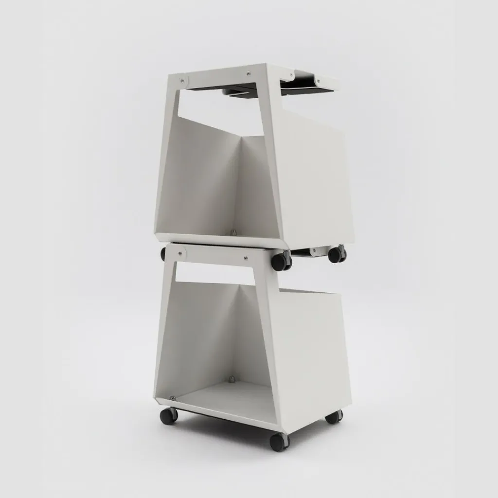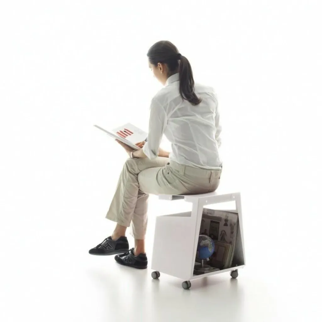 Smith Container Es ist Ablage, Bücherregal, Arbeitsfläche und Stuhl zur gleichen Zeit. Aufgrund der Räder ist es leicht zu verschieben. Sie können es alleine benutzen, auf dem Boden stellen, über einen Tisch hängen, oder auch mehrere Elemente miteinander kombinieren, indem Sie diese schichten.